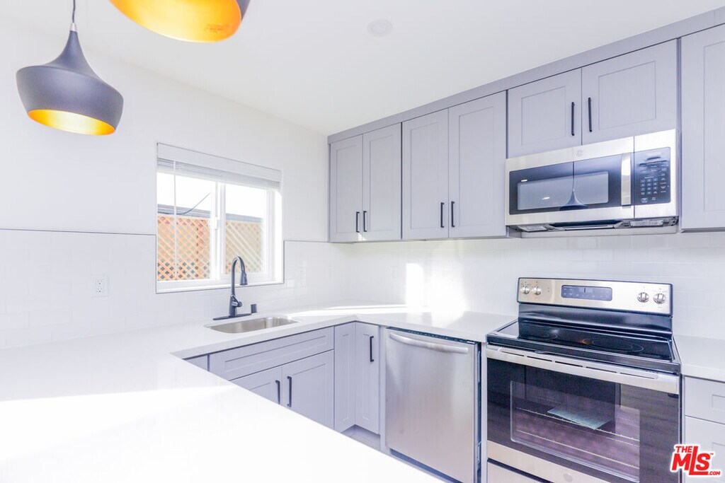 BRAND NEW Completely Detached 3bed 2bath w/ Private Yard and Garage! This unit has it ALL. We are pleased to present this completely brand-new 3-bed, 2-bath masterpiece located within a beautiful courtyard building with mature avocado and citrus trees. Through the front door you enter a large and open living space with plenty of room for living room furniture and separate dining room set-up. The kitchen is a DREAM with gobs of counterspace and cabinetry, high-end stone counters and stainless steal appliances (including dishwasher). There is a laundry center with in-unit washer/dryer too! Each of the 3 bedrooms are large enough for your bedroom furniture with the master bedroom sporting a walk-in closet an en suite bathroom. Air conditioning in each room, brand new windows and luxury flooring round out this beautiful space. With ZERO SHARED walls you get maximum privacy and natural light throughout the home. To make things even better, this property includes a private yard AND a private garage + another parking space! Pet-Friendly: Bring your furry friends along on your new adventure (additional terms and deposit apply). MLS# 26641683