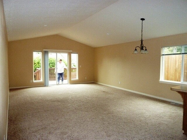 Built in 2006. Two decks. Spacious great room with vaulted ceiling. Fourth room near entrance may be used as dining room or office. 1600 sq. ft., single story Low maintenance yard with sprinkler/drip system Close to Court House, Salem Golf Course, and Minto Brown Island. On cul de sac. Gas stove. AC Large single car garage.
