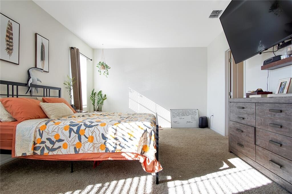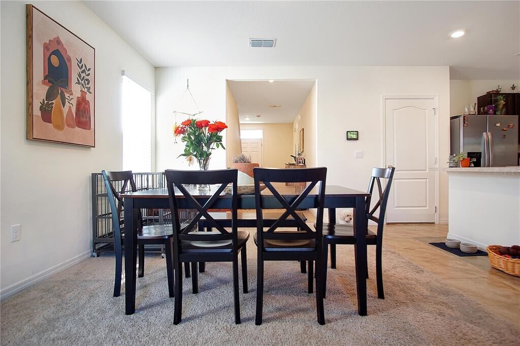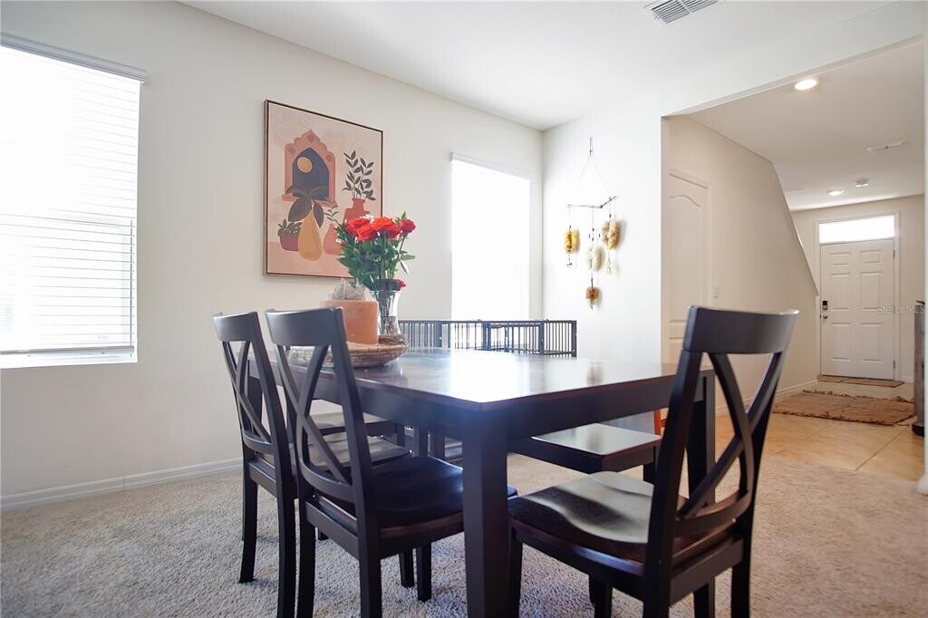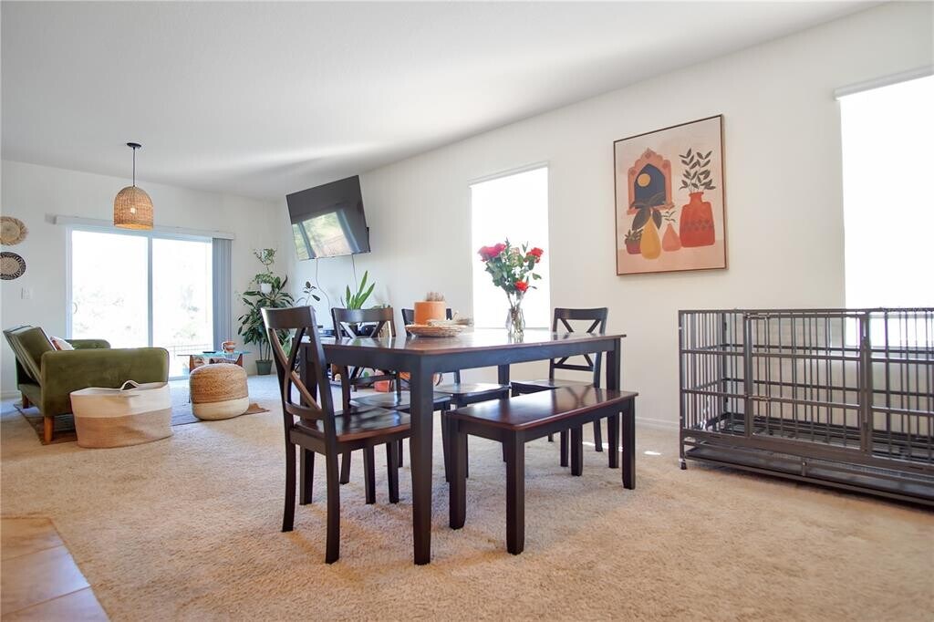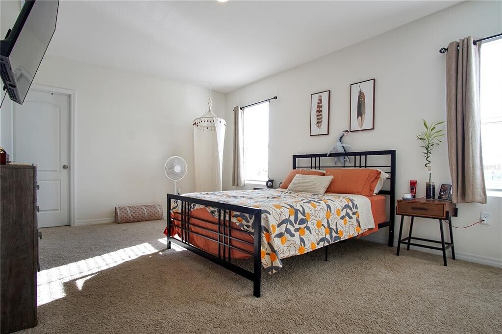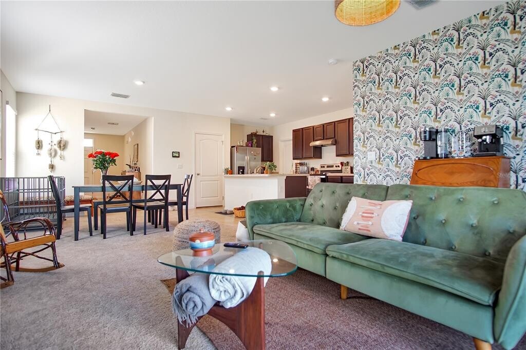 Discover this beautifully designed two-story residence located in Davenport,FL. Offering both functionality and style,this home features a spacious open-concept layout that creates a welcoming flow throughout the main living areas. The modern kitchen is equipped with stainless steel appliances,including a refrigerator,range,and dishwasher,and connects seamlessly to the combined dining and living space. Large sliding glass doors open to the rear of the home,allowing for abundant natural light. The first floor also includes a well-sized bedroom and a full bathroom,providing flexibility for guests or additional living arrangements. Upstairs,the primary suite offers a generous walk-in closet along with an en-suite bathroom that includes dual vanity sinks and a private water closet. Additional bedrooms and bathrooms are positioned to maximize both comfort and convenience. A two-car garage provides ample storage and parking,while the backyard benefits from no rear neighbors,enhancing privacy. The community further enhances the lifestyle with amenities such as a swimming pool and soccer field. Positioned near Highway 27,this property allows quick access to local shopping,dining,and entertainment options. This residence presents an excellent opportunity for those seeking comfort and convenience in a desirable Davenport location. Schedule your showing today! MLS# S5133112