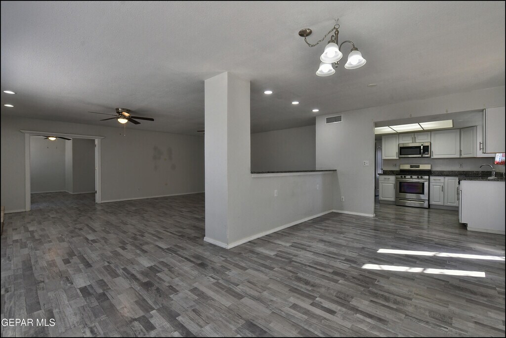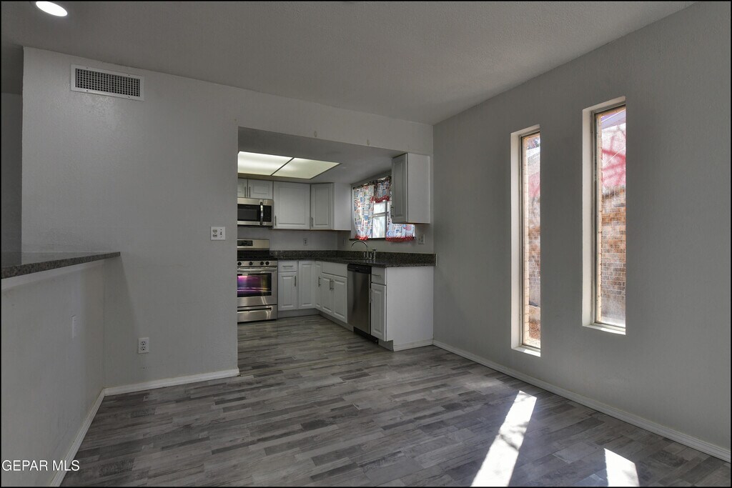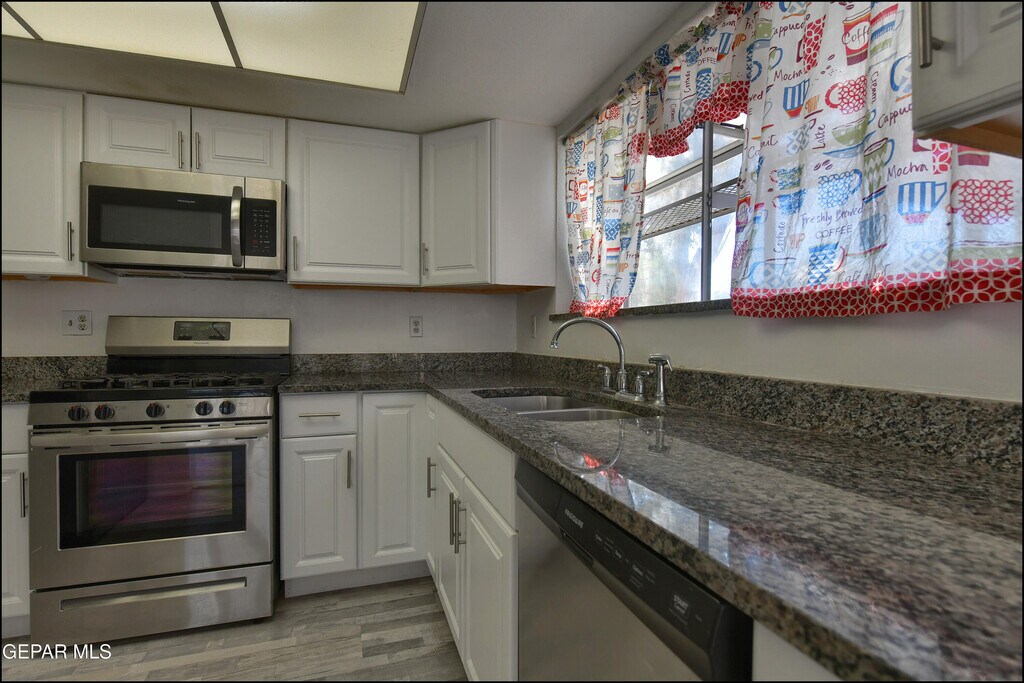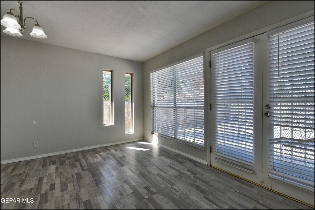 Welcome to this stunning and spacious home in East El Paso,designed for both comfort and style. As you enter,you're greeted by a large,open-concept living and dining room,filled with amazing natural light from oversized windows—an ideal space for entertaining friends and family. The fully equipped kitchen boasts granite countertops,a breakfast bar,ample prep space,and a cozy breakfast area,making it a joy for preparing home-cooked meals. The private master suite features a walk-in closet and an attached bathroom,while two additional nicely sized bedrooms and a full bathroom provide plenty of room for everyone. Step outside to your backyard retreat,where an open patio invites weekend grilling and al fresco dining. Don't miss the chance to make this beautiful house your new home!