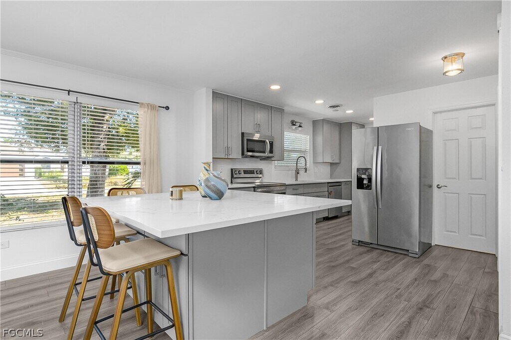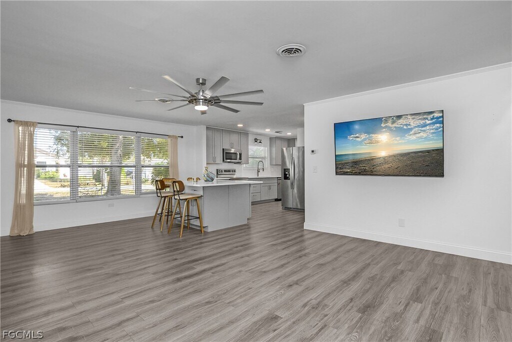 174 2nd St is a 3 bed 2 bath single family home located in the unincorporated section of Bonita Springs. NO HOA! This home was fully Modernized and updated in 2023 with Stainless Appliances in the kitchen,new countertops,new cabinets,and huge new kitchen island w/storage,New floors,new paint interior and exterior,updated bathrooms,metal roof,new landscaping,sod,and irrigation,Enjoy the peaceful outdoors from your private screened in lanai,FULLY fenced in backyard! PETS - No Pets Allowed