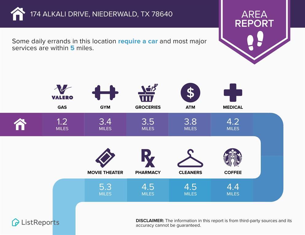 174 Alkali Dr has 3 parks within 9.3 miles, including Ladybird Johnson Wildflower Center, Jimmy Clay Golf Course, and Roy Kizer Golf Course.