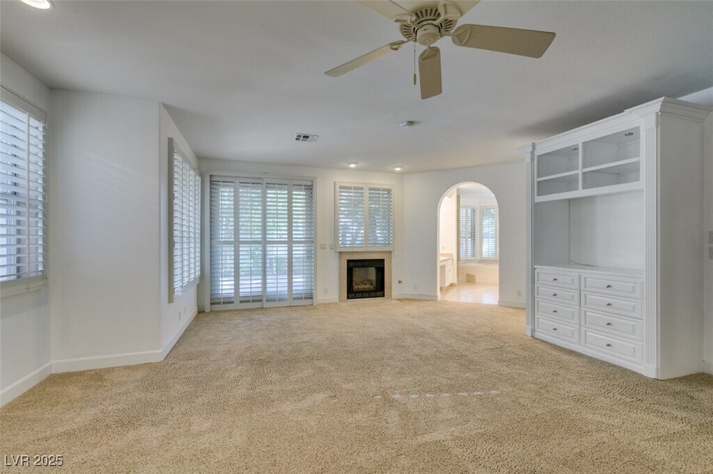 Welcome to Vintage, an exclusive Green Valley enclave where every detail feels elevated and inviting. Step inside to soaring vaulted ceilings and a striking formal living and dining area centered around a warm fireplace. The kitchen shines with granite counters, tile flooring, built-in ovens, and a cooktop island ideal for lively hosting. The family room becomes your entertainment hub with a spacious seated bar and sink, a cozy fireplace, and custom built ins. The expansive downstairs primary suite delivers true luxury with its own fireplace and private access to a lush backyard oasis. Outside, enjoy the pool and spa with a relaxing Baja shelf, surrounded by manicured landscaping, shaded seating areas, and plenty of space for outdoor dining or entertaining. Upstairs, a versatile loft joins three bedrooms: one with its own full bath and the other two sharing a well-appointed Jack-and-Jill bathroom, offering comfort and flexibility for everyone. Base rent $4300 + $37 RBP.