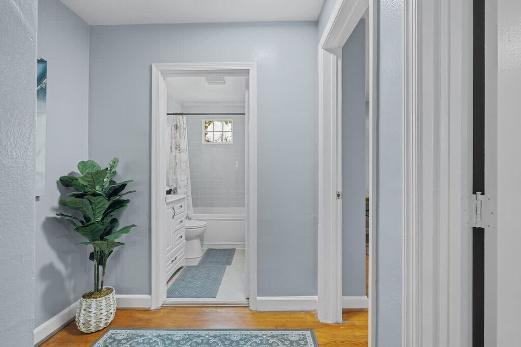 Welcome to your perfect getaway! This beautifully updated home offers comfort, style, and all the amenities you need for a relaxing stay. Enjoy the open-concept living and dining area, where you can whip up delicious meals in the fully stocked kitchen, complete with everything you need to feel right at home. The newly remodeled full-size bathroom offers a clean, modern feel, while two cozy queen bedrooms provide a restful night’s sleep with plush bedding and soft lighting. Enter the home and feel an immediate sense of calm as cool air and natural light welcome you into a spacious, peaceful living area. Whether you're curling up with a book or enjoying a rainy day indoors, there's plenty of room to stretch out and relax. Gather around the dining table for hearty meals and laughter – it's the perfect spot to connect and share stories. The well-appointed kitchen is fully stocked and ready for longer stays, making meal prep a breeze. Just off the kitchen, you’ll find a convenient tucked-away half bath and a full-sized washer and dryer to make extended stays even more comfortable. Head upstairs to find two large, cozy queen bedrooms and a beautifully remodeled full-size bathroom featuring a shower/tub combo – ideal for winding down after a day of exploring or working remotely. Out back, enjoy the peaceful backyard space – perfect for sipping morning coffee or soaking up some sunshine. Additional fees apply for smoking indoors, vomit or bodily fluid or waste, illegal drug paraphernalia, glitter or confetti, unauthorized pets, dirty dishes, and missing towels. Dogs are allowed with a maximum of two dogs during your stay, with a $99 non-refundable pet fee. Pets must not be left alone during your stay, you must pick up after your pet in the yard, and they are not allowed on furniture or beds. Evidence of pets on the furniture or beds will incur additional cleaning fees. Cats are not allowed at the property. If additional guests are joining the original reservation guest count, please contact immediately. Any additional guests over the amount specified in the reservation will result in a $75 fee per person. Guest is responsible for damages caused by their party. Failing to vacate the property by the posted or agreed upon checkout time will result in a $60 per hour late checkout fee. Quiet hours must be maintained between 10pm and 8am. Failure to follow rules may result in a canceled booking and forfeiture of payment.
