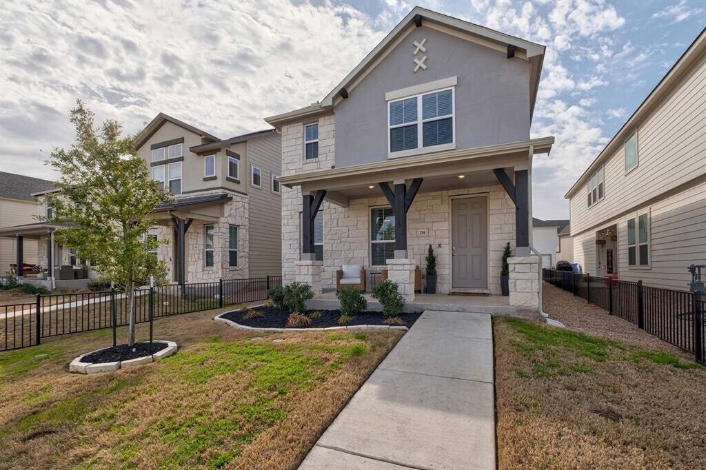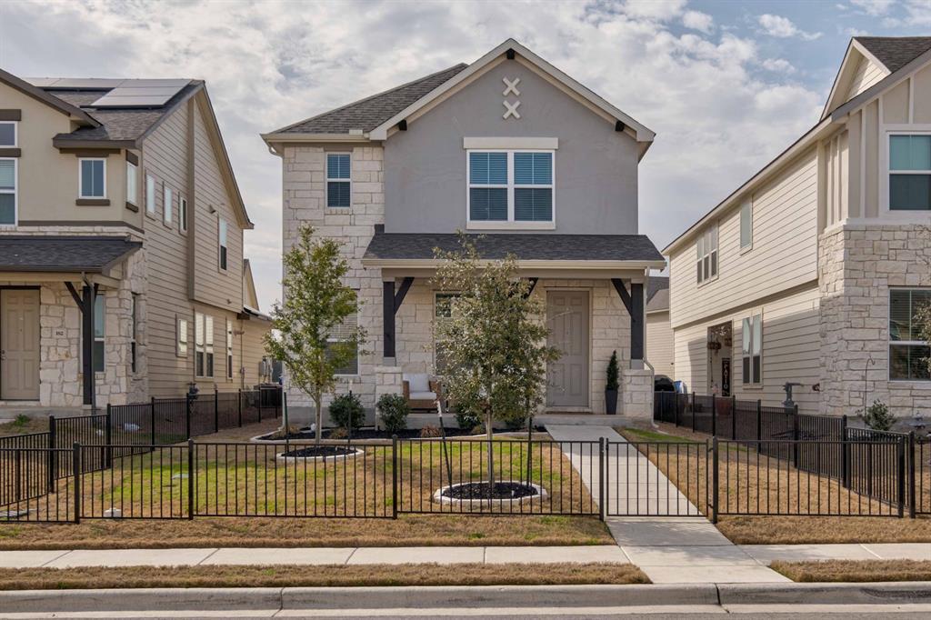 Located in the heart of Dripping Springs within the family-friendly neighborhood of Big Sky Ranch, enjoy the award-winning Dripping Springs ISD. This stunning home offers a lovely landscaped and fenced-in front yard with a large covered front porch that is perfect for a porch swing or sitting area. Inside this meticulously cared for home, you will find a wide-open floor plan that flows through the entire first level allowing for plenty of space for gathering. Framed with large windows and ideal for entertaining, the kitchen and dining area serves as the heart of the home with pristine white cabinetry, grey quartz countertops, luxury flooring, stainless steel appliances, walk-in pantry, and a large double sink. Upstairs you will find a spacious primary suite with a generous walk-in closet. Separating the primary and the other two bedrooms, is a thoughtfully placed, fully enclosed office/flex room/possible 4th bedroom with custom French doors to let in an abundance of natural light. Perfectly situated on the second floor for convenience is a large laundry room, extra storage closet, and a second full bath. All of this comes with the Big Sky Ranch community and lifestyle including a 3.1-acre amenity center with a large pool, splash pad, and playground, plus walking and bike trails that lead to Founders Memorial Park and minutes from historic Mercer Street and downtown Dripping Springs. MLS ID 7728301