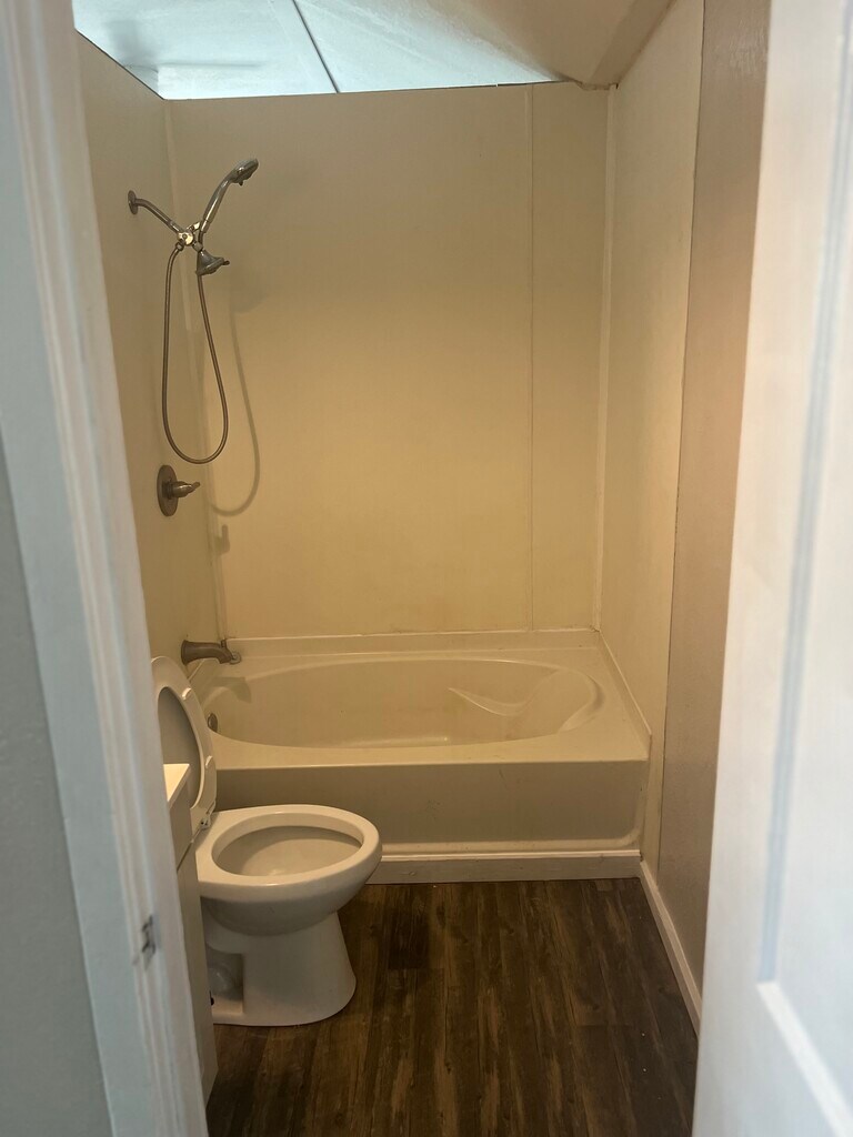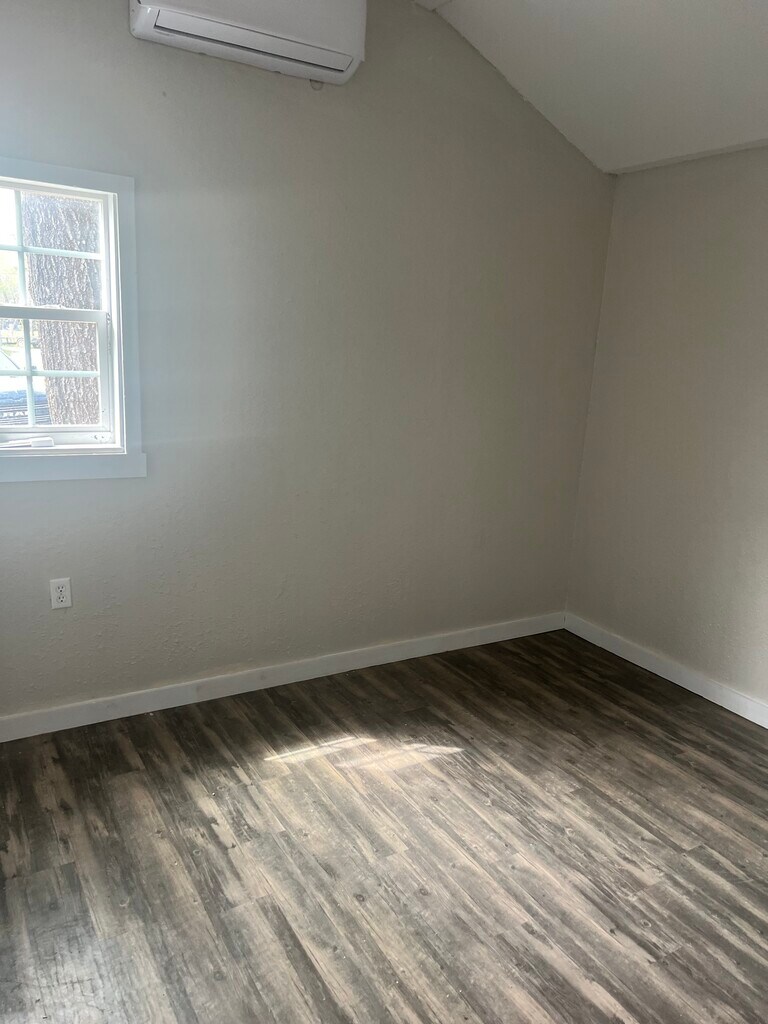 Small 2 bedroom / 1 bath house. The house has central heat and AC, luxury vinyl plank flooring, and fresh interior paint, Covered porch and fenced yard. House has washer/dryer hookups.