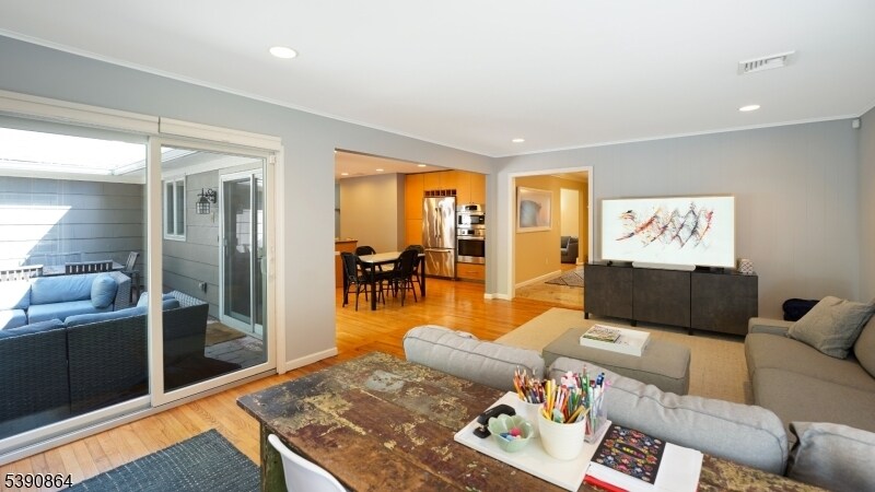 Beautifully maintained ranch featuring spacious rooms, rich wood molding, and marble foyer entry. Enjoy an open floor plan with central air, hardwood floors, and a large finished basement ideal for extra living or entertaining space. The primary bedroom includes a private bath, and the attached garage offers everyday convenience. Freshly painted inside and out, this home is located near schools, the Montclair Art Museum, restaurants, and shopping. Pictures show current tenants furniture. House will be vacant before lease start date.