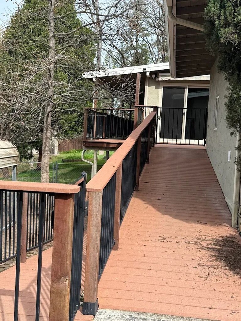 Nestled on 2 peaceful acres in Applegate, this charming 3-bedroom, 2-bathroom 1956 home (1,296 sq ft) offers a serene foothill retreat perfect for long-term renters seeking space and nature. Enjoy vaulted pine ceilings, abundant natural light, and a blank-canvas interior ready for your personal touch, ideal for families or remote workers. Spacious Interiors The open living area boasts a brick fireplace, beamed ceilings, and large windows with wooded views, flowing to a functional kitchen with wood cabinets, tiled counters, stainless fridge, and dishwasher. Three light-filled bedrooms and full baths provide ample comfort, complemented by wall-to-wall carpeting throughout. Outdoor & Lifestyle Perks Multiple decks and balconies overlook lush greenery, a seasonal creek, and your expansive lot, great for gardening, pets (with approval), or relaxation. Wheelchair-accessible ramp ensures easy entry; close to Auburn amenities and Sierra Hills Elementary (0.9 miles). Available now for lease. Pets considered with deposit; no smoking. Renter handles utilities, yard maintenance, and renters insurance. Contact for showing and details.