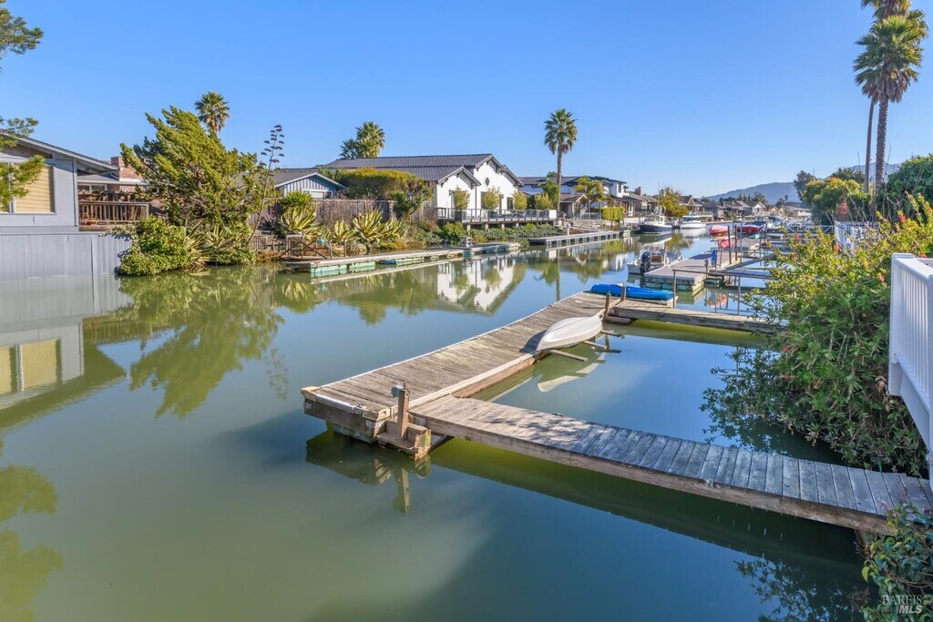 This charming 3 Bedroom + Office, 3 Bath waterfront home is ~2,200 SQFT and sits on a fully enclosed 1/4 acre lot. The home features a bright eat-in kitchen with tall wine refrigerator and seamlessly flows into the dining and family rooms that offer beautiful water views. The separate living room opens onto the dockside deck, further embracing the indoor-outdoor lifestyle. The interior is enriched with hardwood floors, French doors, tall open-beamed ceilings, and a wood-burning fireplace that create a warm and inviting atmosphere. The primary suite includes dual walk-in closets, a cozy sitting area with water views, and a large ensuite bathroom with dual vanities, soaking tub, and standing shower. The detached office offers a perfect space for remote work or relaxation. The outdoor spaces include a secluded solar-heated pool with afternoon sun, spa, wrap-around yard, expansive sunny back deck, and a private deep-water boat dock with direct access to the SF Bay. Additional features include a spacious laundry room, security gate, alarm system, A/C, and 3-car garage. Paradise Cay is a friendly waterfront community with flat streets, no overhead powerlines, and minimal traffic noise. Located in the Reed and Redwood school districts, with all buses stopping just across the street. Available for long-term lease, this property is offered fully, partially furnished, or unfurnished with terms negotiable. Don't miss this rare opportunity to call this waterfront paradise your home. MLS#325103935