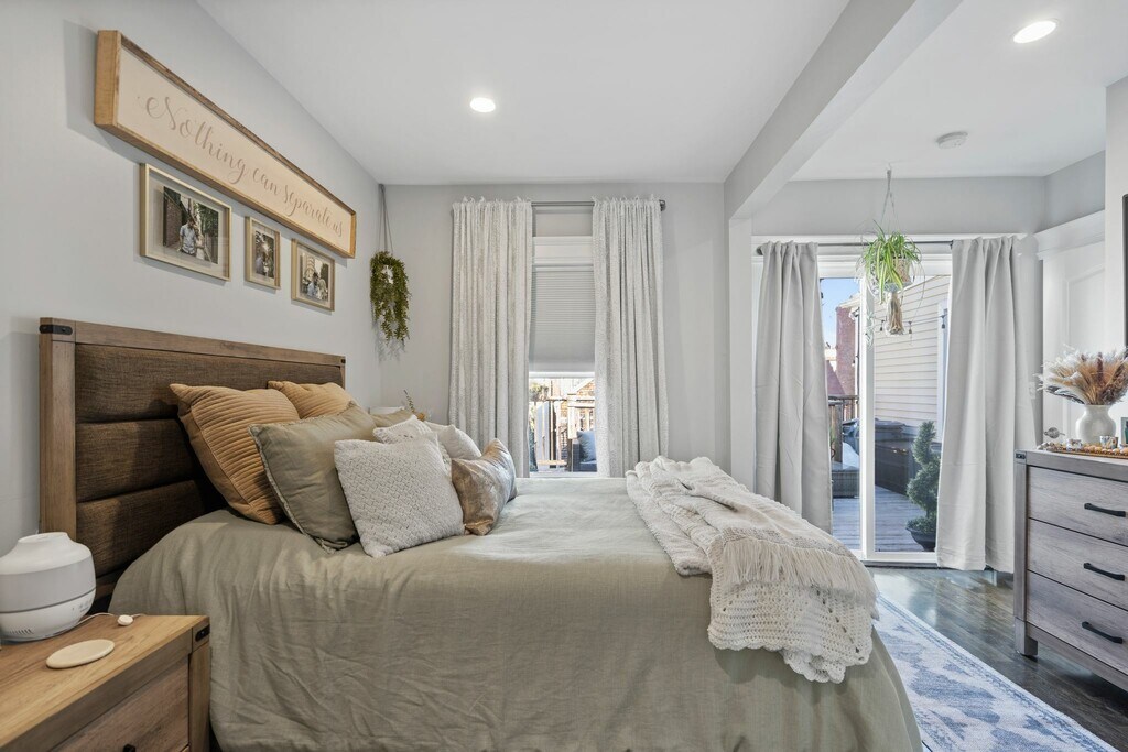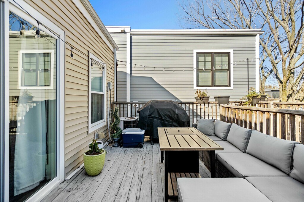 Gorgeous Westside penthouse condo with open floor-plan. Updated kitchen with beautiful quartz countertops, stainless steel appliances, breakfast bar and sun filled living area. Primary bedroom with spacious ensuite bath, a large walk-in custom closet and laundry. Sliding doors lead from the bedroom to the private deck as well as an additional backdoor off the hallway for access with stairs leading down to the fenced yard for common use. The main living space includes a dining area and hardwood floors throughout. The light-filled second bedroom also includes a a custom closet. Building includes keyless entry. Pet friendly.