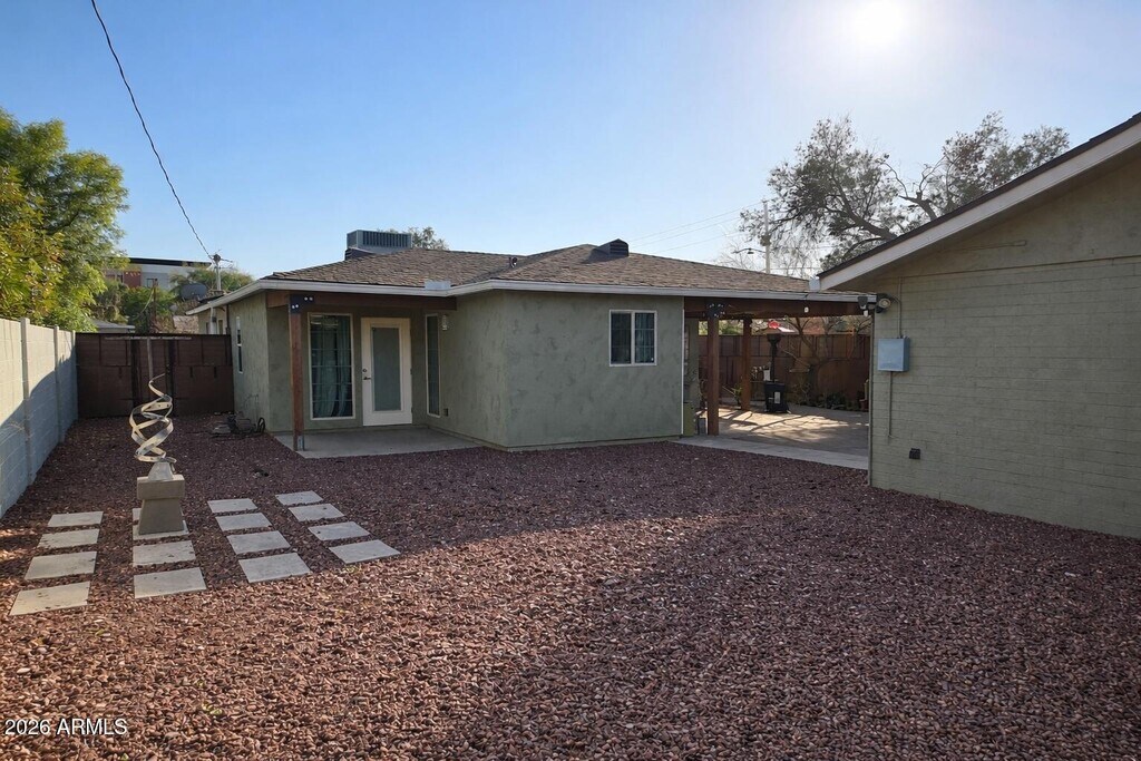 Located in the heart of Central Phoenix,this beautifully updated home offers ideal access to some of the area's best restaurants,coffee shops,and local shopping including AJ's Fine Foods,Flower Child,Postino,Federal Pizza,JL Patisserie,the Melrose District,and nearby Uptown retailers. Easy light rail access makes commuting simple. The home features a 2-car detached garage,private yard,and a spacious patio perfect for entertaining,all surrounded by easy-care desert landscaping. The primary suite includes an oversized walk-in shower with dual showerheads. Thoughtful updates throughout create a clean,modern,and comfortable living space.
