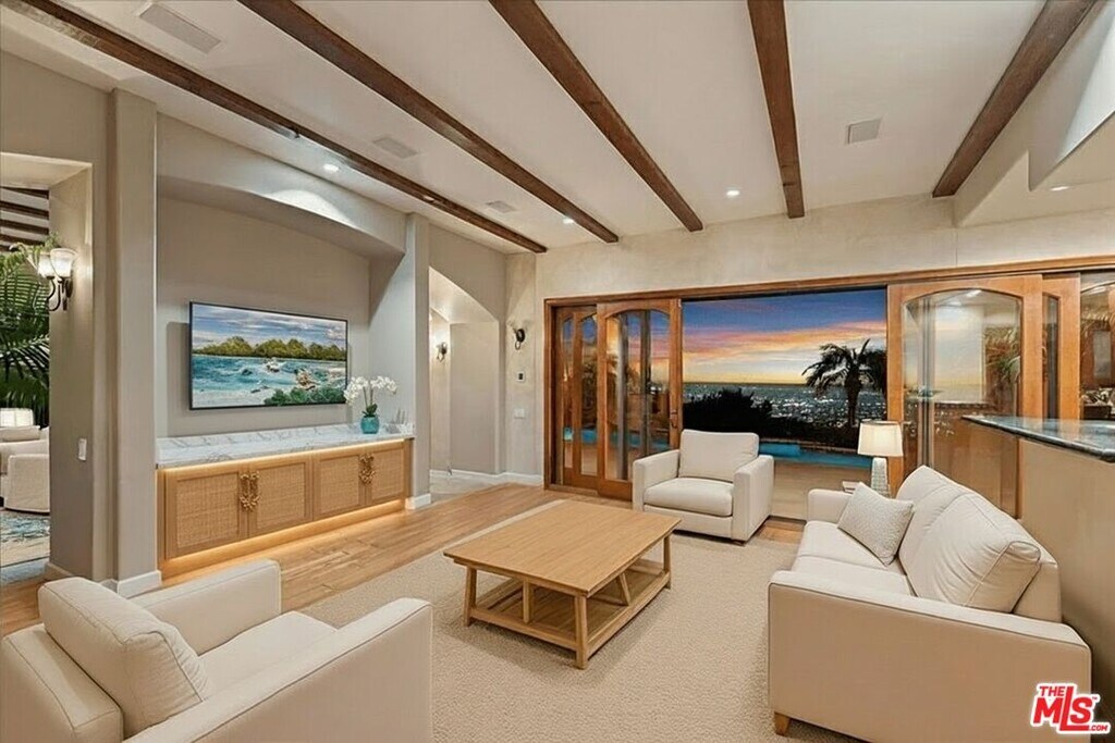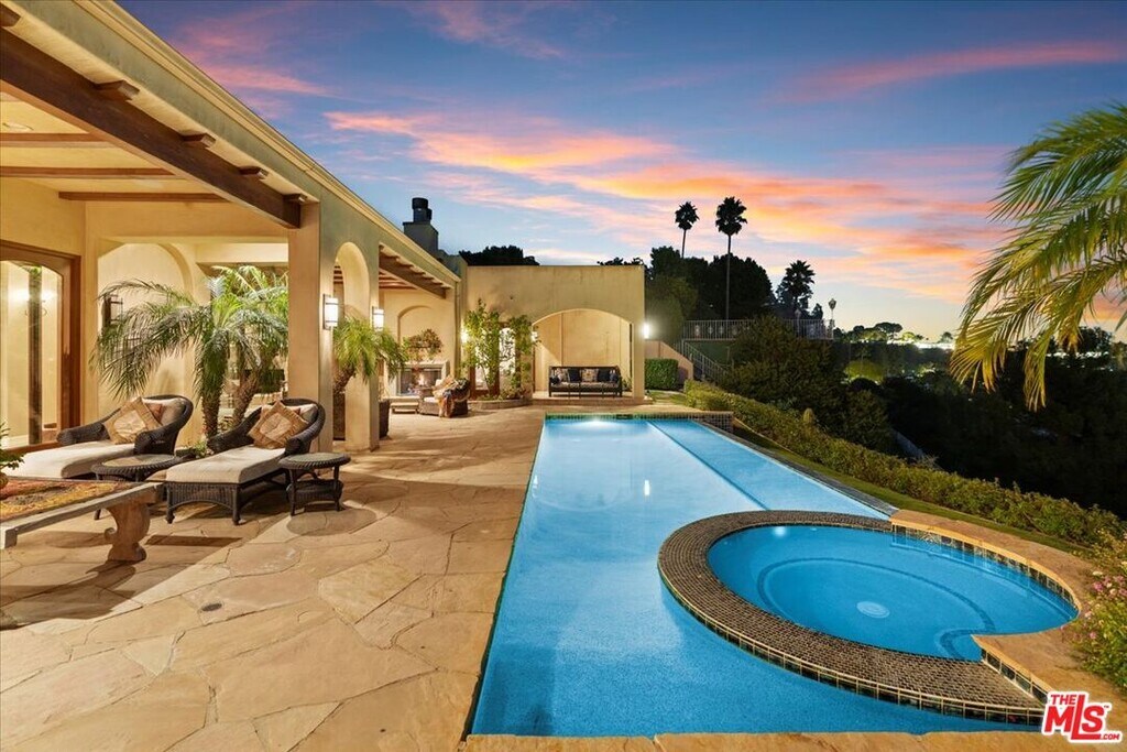 Situated in the prestigious Trousdale Estates, this one-of-a-kind Mediterranean architectural gem captures the sophistication and serenity that define Beverly Hills hillside living. Privately set on coveted Carla Ridge, this custom-remodeled single-story residence offers four bedrooms and five baths, thoughtfully designed to highlight its sweeping panoramic city views and exceptional privacy. The home welcomes with warm Mediterranean character, generous ceiling heights, and an inviting floor plan that blends elegant living spaces with updated finishes throughout. Large picture windows frame stunning city vistas and fill the interiors with natural light, enhancing both everyday living and effortless entertaining. The remodeled kitchen and common areas provide comfortable flow, while the bedroom suites are well-appointed for relaxation and privacy. Outside, the property delivers the true Trousdale experience serene views, mature landscaping, and multiple areas for lounging and dining, all set against the dramatic backdrop of the city skyline. An opportunity to lease a distinct, custom-crafted Mediterranean home in one of Beverly Hills' most coveted enclaves. Available for Sale too! MLS# 25619207
