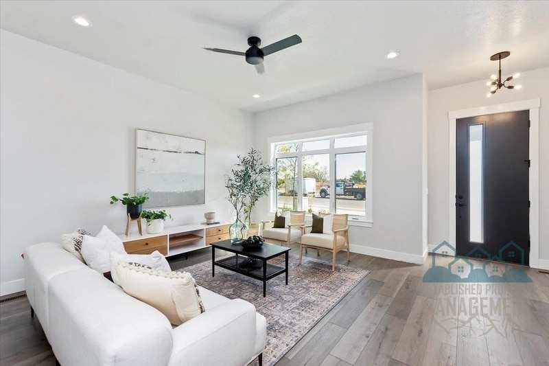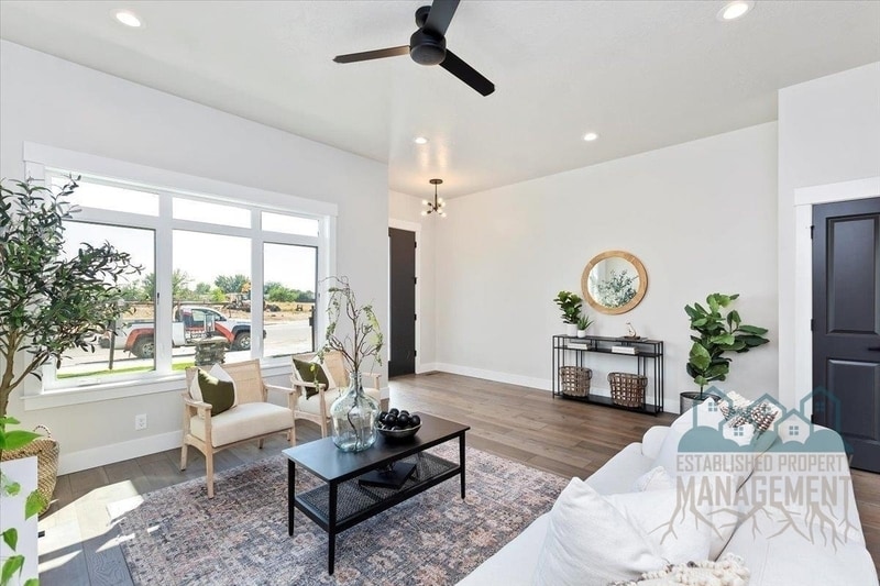 This beautiful, brand new and timeless home offers great location with clubhouse amenities! Close to the Village at Meridian which features shopping, restaurants, movies, fountains, & more. The great room is large & open to the kitchen & dining room which is perfect for friends & family to gather & socialize. There is a powder bath and laundry room on the main level. Upstairs you will find the owners suite with large bathroom & tile walk in shower as well as two more bedrooms and bath. Upgraded stainless steel Bosch appliances, Backlit floating mirrors, designer finishes, wood wrapped windows/doors, & much more. Pool and ball courts are yours to use along with zero hassle landscaping provided by HOA. Household monthly income must meet or exceed minimum guidelines for the property. Applicant must show proof of income, either pay-stubs with bank statements to verify deposits or tax returns with current P&Ls for self-employed applicants, proof of sufficient funds to maintain rental agreement may be requested. Longevity in employment or industry is a factor taken into consideration for applicant's qualifications. Prior evictions, or outstanding debt to landlords will result in automatic denial of application. Any applicant convicted of, or pleading no contest to a violent felony, a violent misdemeanor, or sex crime will be denied residency. Applicants who has been convicted or plead no contest to any other felony or misdemeanor may be denied residency based on a review of the facts and circumstances surrounding any such incident(s). Any factually inaccurate, false, or misleading statements on an application will be cause for automatic denial of the application. All adults who intend on residing in the property must submit an application and satisfactorily complete a credit, criminal, employment, and residency screening and background check. -Cats are not permitted for this property (regardless of what Zillow/Trulia 3rd party marketing may propose). -Other Pets are considered solely at the discretion of the homeowner and an additional deposit/rent may apply. ($750 refundable deposit or $250 refundable deposit and $50/mo. per month pet rent). -No smoking inside of home or in common areas around home. -1 month rent + security deposit required at move-in. There is a $144 one-time charge for management setup/onboarding. ______________________________________________ The following items are required for application to be processed: • Copy of a valid drivers license or Government Issued ID • A valid social security number • Proof of income • Photo of any pet(s) • You can email any of the above items to • Management and Rental Owner Reserve the Right to Request Additional Documentation The following are minimum requirements that you will have to meet in order to be considered for a rental: • Income needs to be documented via pay stubs or bank statements in order to be considered in ratios. • Verification of employment will be conducted via fax, phone, email, or letter. All four may be used in conjunction. • Monthly gross income needs to reasonably support the amount of the rent in order to avoid a financial hardship, as a standard measure 2.5x income to rent is calculated...but debt to incomes shall be considered. • A credit score minimum of 650 is expected, but a history of derogatory payments/collections on applicants credit check may result in denial or request of higher security deposit. • Inquire with manager about approval of credit scores less than 650, typically a minimum 2x-3x rent as deposit will be required. Up to 3x-4x the rent if credit is below 650 and has recent credit problems within the last 2 years. • Any applicant evicted from a prior home or residence within the last 10 years, any applicant convicted of the manufacture of or distribution of a controlled substance, an applicant convicted of a violent felony or misdemeanor may be denied residency based on a review of the facts and circumstances surrounding any such incident(s). Any applicant whose combined household debt-to-income ratio falls below accepted ratios may be declined. An increased security deposit and/or an increased lease rate may be offered to applicants whose combined household score do not meet our criteria in order to supply the landlord with additional security and incentive to accept an application that otherwise falls below standards. We strictly abides by housing laws and any applicant whose household make-up exceeds safety standards will be denied residency. • There is a $25.00 non-refundable application with background/credit screening per adult residing in the home. This application fee is due after credit & background is requested. All move-in costs are due upon approval. Certified funds required; money order, cashier's check, or ACH/Debit only. Funds are used to obtain credit reports, employment verification, eviction search, criminal court search, current and previous landlord character reference verification, and property management collection search. • ALL ADULTS OVER THE AGE OF 18 MUST FILL OUT A SEPARATE APPLICATION