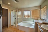 Welcome to this beautifully updated 4-bedroom, 3-bathroom gem in the heart of Green Valley. Nestled on a premium corner lot with soaring cathedral ceilings and a spacious, open layout. The 10,000+ sq ft property, offers plenty of room to build your dream pool or create a backyard oasis. The first floor features a private guest suite with its own full bathroom. The gourmet kitchen is a chef’s dream with granite countertops, custom cabinetry, stainless steel appliances (including new stove and dishwasher), and ample space for entertaining. Upstairs, unwind in the luxurious primary suite complete with its own cozy fireplace, oversized sitting area, and spectacular mountain views along with the Las Vegas Strip. Enjoy winter nights by the second fireplace in the main living area and warm summer evenings on your covered patio. Additional upgrades include new AC units and a new water heater. This home truly has it all—act quick before it's gone!