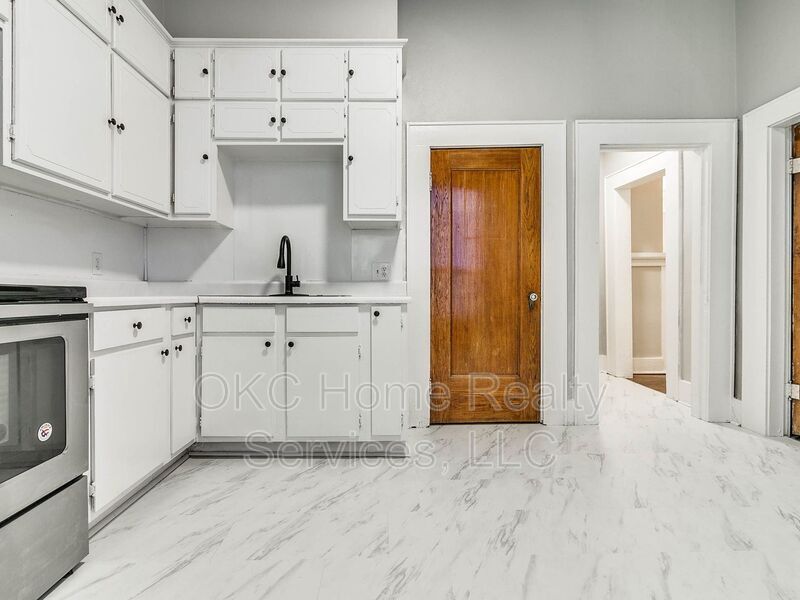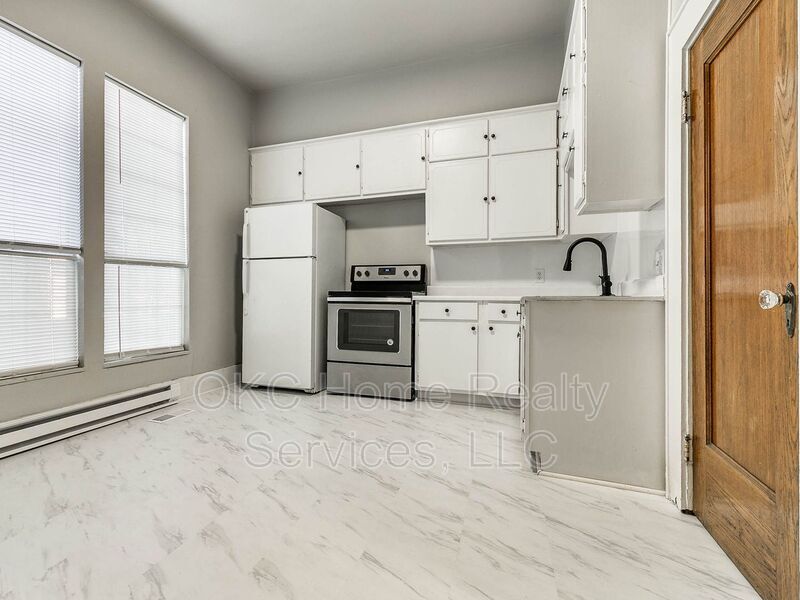 *Option to split the deposit in two payments.* Approved applicant for this property will receive a $250 rent credit. ** **Active Military members half off of the deposit** Must see Apartment. Completely remodeled apartment close to Plaza district and a 1/2 mile from Saint Anthony's in OKC's urban core. This beautiful and very large 1 bed 1 bath apartment with nearly 1,000 squared feet has a living room with 12 foot ceilings, which features a curved wall with dramatic 2 foot crown molding with Faux fireplace with plenty of charm. This opens into a large eat in kitchen which is stocked with a fridge/stove and large pantry. Lots of storage available throughout and plenty of cabinet space in the kitchen. Tenant pays Electric. Landlord pays water, sewer, and trash. Pets allowed. Monthly pet fee per pet. Two pet limit. Offered by Broker, OKC Home Realty Services, LLC.