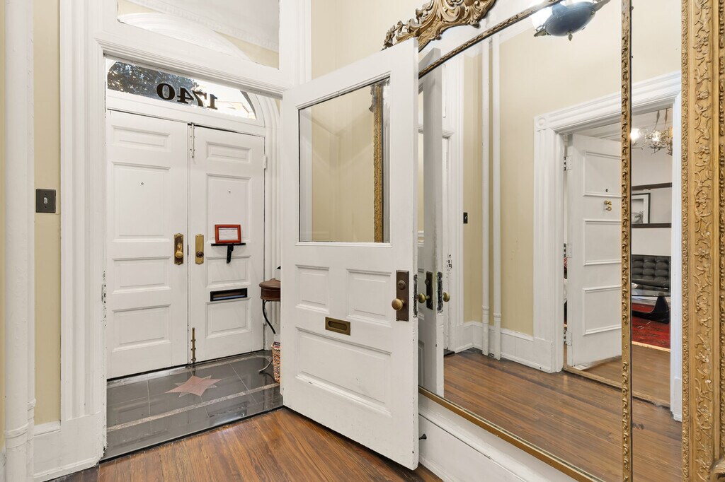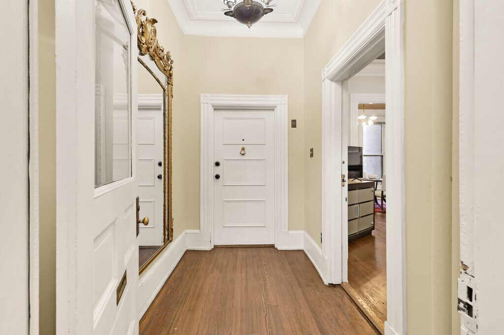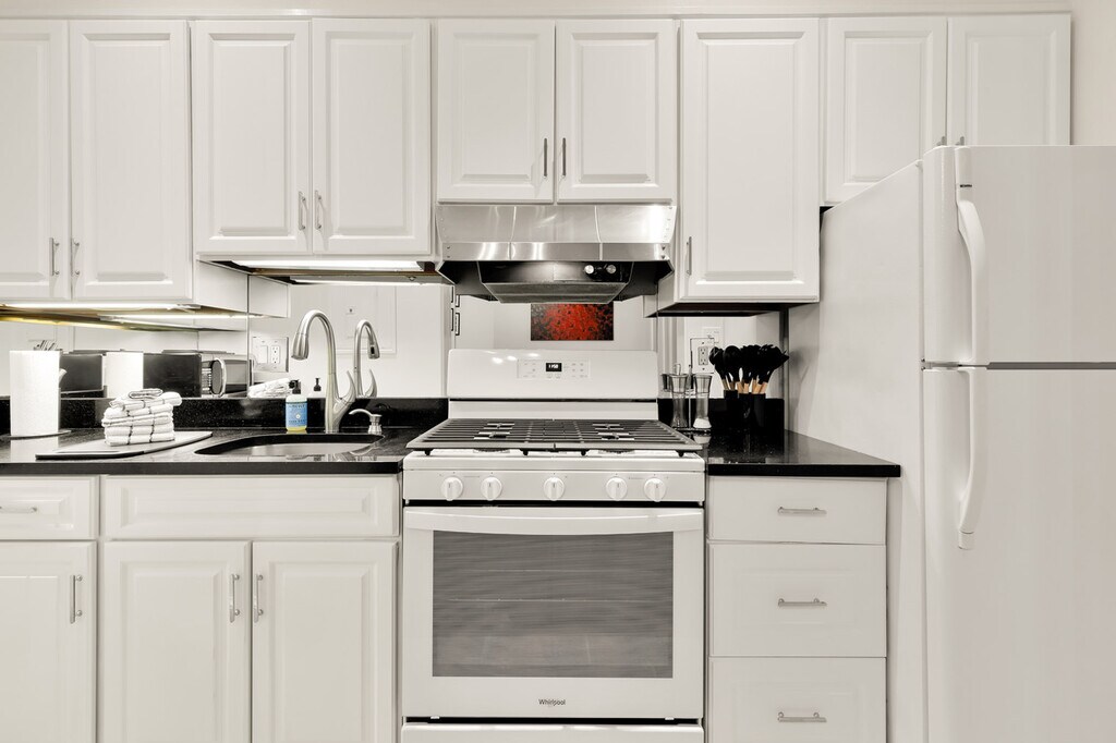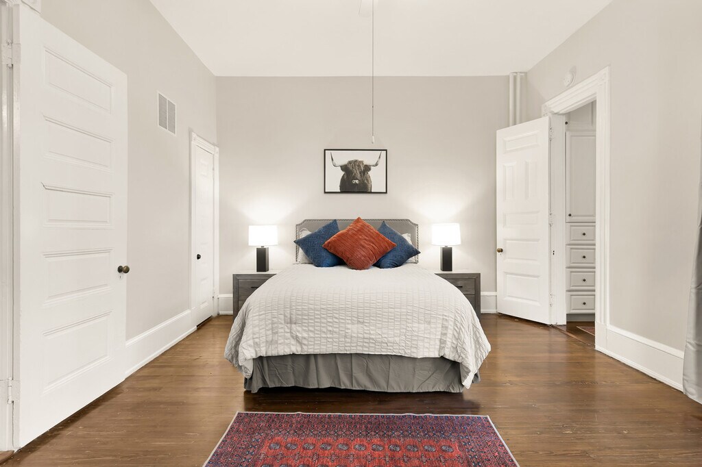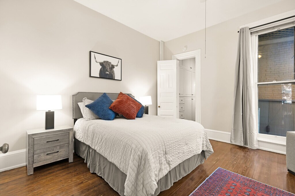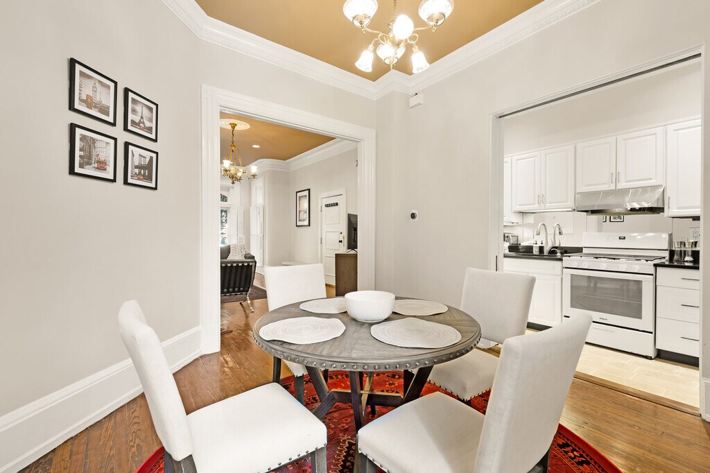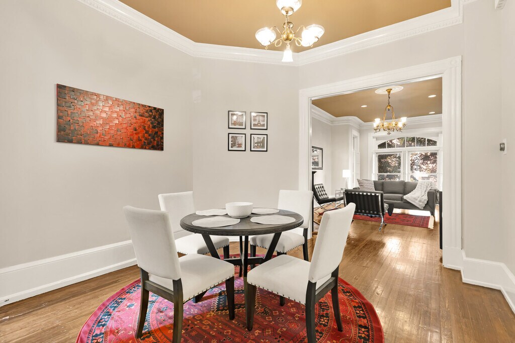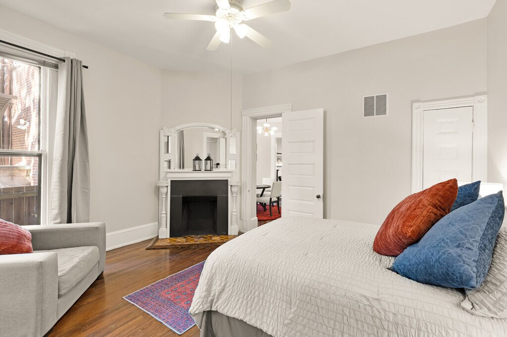Feel at home in this fully furnished 1-bedroom apartment (with a second room that can be used as a second bedroom, office, or home gym) in a historic D.C. rowhome. This space has been updated to include modern amenities, including an in-unit washer/dryer, built-in storage and closet space, and double glazed windows to reduce noise and keep the space warm through winter. The apartment benefits from a very large living space with a working fireplace, as well as a separate dining room, small but functional kitchen, large main bedroom with a working fireplace, closet built-ins as well as an additional storage closet, bathroom with a tub and marble tiling, and a second bedroom at the back which opens onto the private patio. Period features include 13-foot ceilings with original crown molding, original and well-maintained wood floors throughout, an original pocket door running the length of the kitchen, and charming vintage light fixtures original to the home. A reserved off-street parking spot is available. Outside you have a private patio space shaded by a large magnolia and surrounded by a garden area. The second bedroom at the back which opens onto the private patio makes the perfect guest space, home office, or home gym. Parking is available for an additional $10 per day [SI]