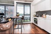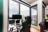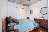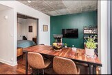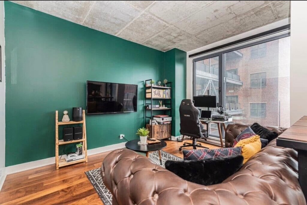 Description: Cozy apartment to rent in the Nordelec building. A historic building, very close to Griffintown and the canal. Possibility to rent an indoor parking. A few mins to Charlevoix metro, and 10 mins from downtown. Plenty of amazing cafes and good eateries nearby. The green wall in the picture is painted white and the floors have been completely changed in 2022. There is a common indoor lounge equipped with a theatre room and pool table, a gym and outdoor pool to enjoy in the summer. Pet friendly