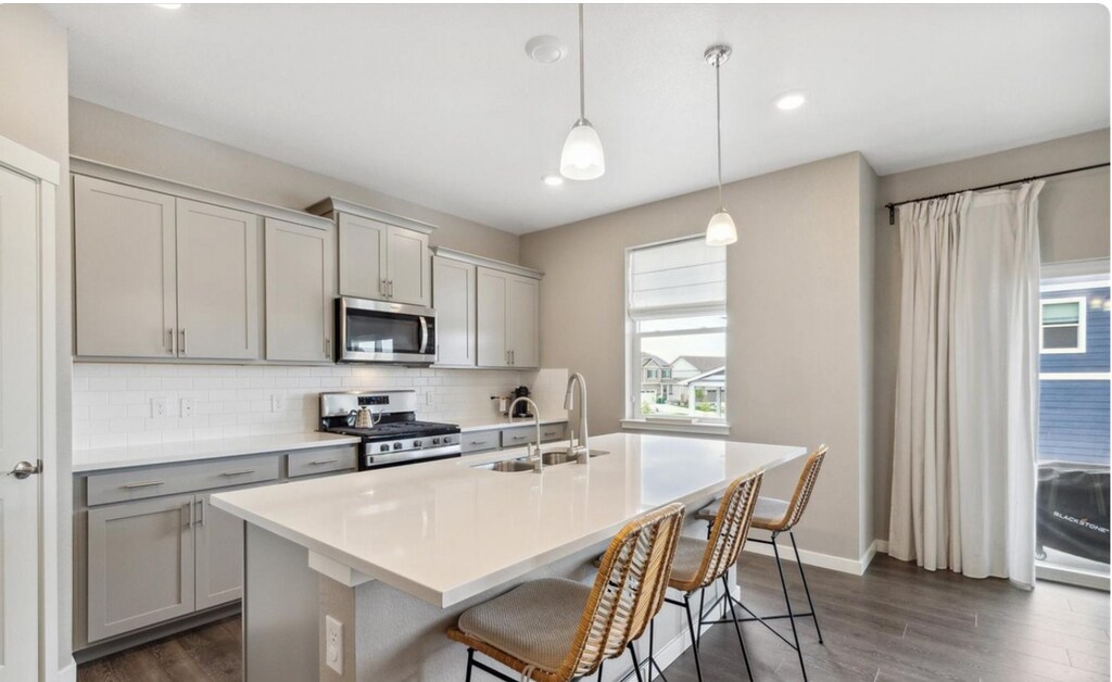 Beautiful, open plan with a lot of natural light & designer finishes throughout the house. Features 4 bedrooms, 3 full baths, and office/flex room with a spacious 2 car garage. Gourmet kitchen with gray shaker custom cabinets, a quartz countertop, stainless steel appliances, and a walk-in pantry. Home also features a quartz countertop in the master and in all secondary baths. Laundry room conveniently located on the upper floor with washer and dryer. Smart Home package including video doorbell, tankless water heater and garage door opener and water softener. A refrigerator will be installed prior to move in. Premium corner lot with large fenced backyard and backs up to community park. Crowfoot community amenities include a community pool, recreation area and 17 acre park with walking and biking trails Nearby is the Pace Center, Main Street Parker (shops/restaurants) Library, Parker Ice Trail at Discovery Park, and dog park. Close to I-25/C470, DTC, park and ride, and the RTD light rail. Credit and Background check will be done on all applicants over 18. Cost is $49.95 per person