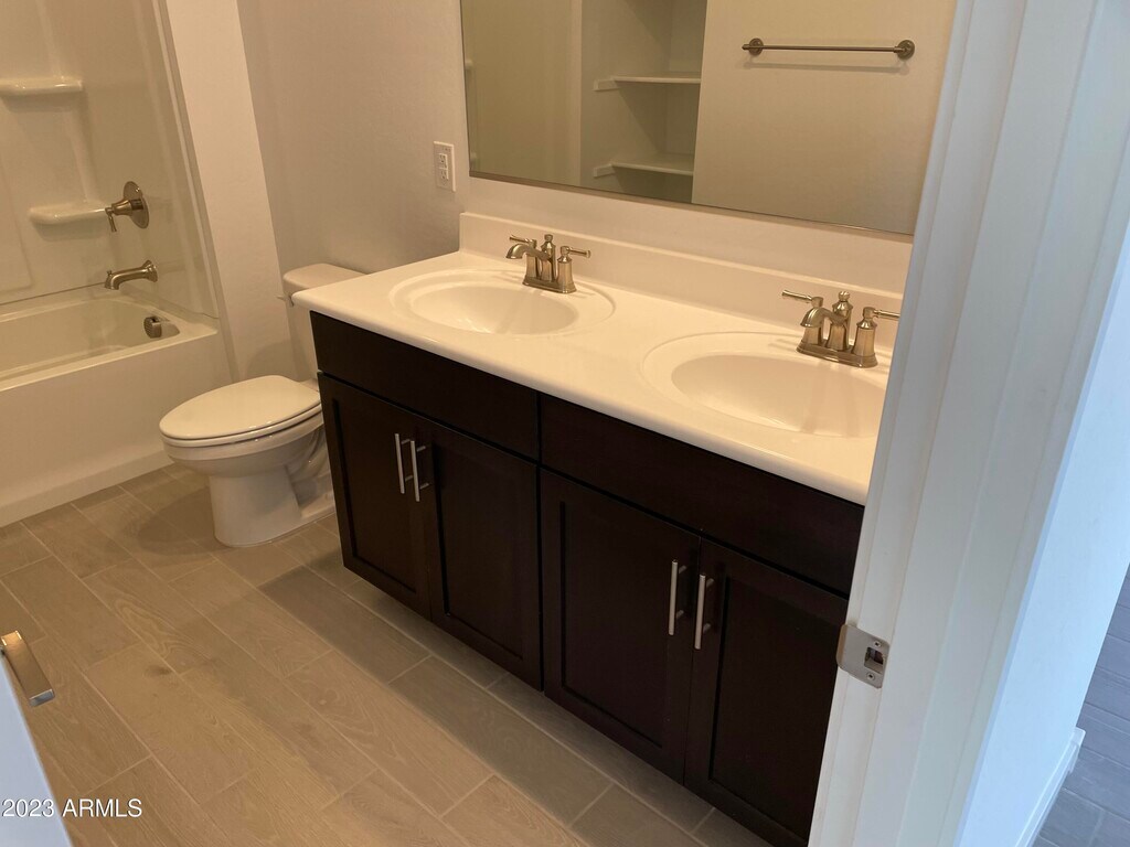 The perfect rental! Gourmet kitchen with stainless steel appliances and quartz counters,large center island,staggered espresso cabinets,pantry and farmhouse sink with upgraded fixtures! Flooring is wood-look tile and carpeted bedrooms. Kitchen overlooks large family room. All bedrooms are good sized with great closet space,master has dual vanity and huge walk-in closet! Covered patio and low maintenance landscaping out back with view fence of common area,no one behind you! Home sits on a corner with pocket park next door. Desert Oasis community offers pools,walking and biking trails,parks,schools,mountain views with entertainment and shopping just minutes away!