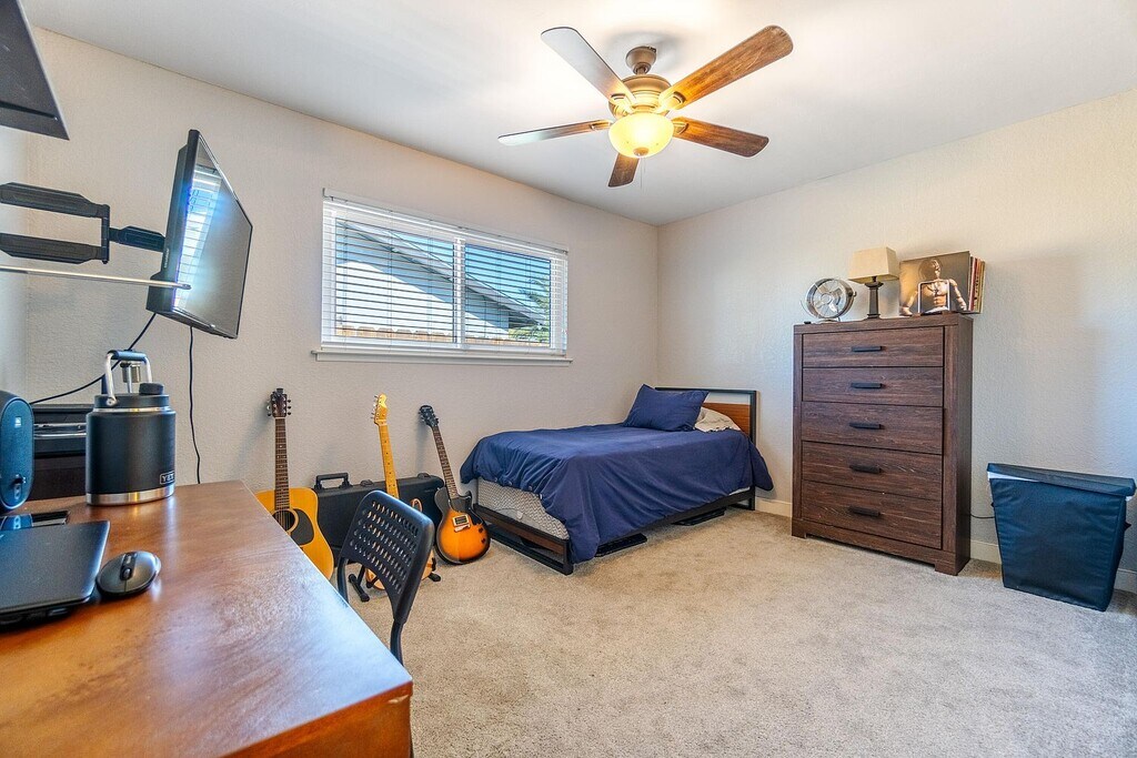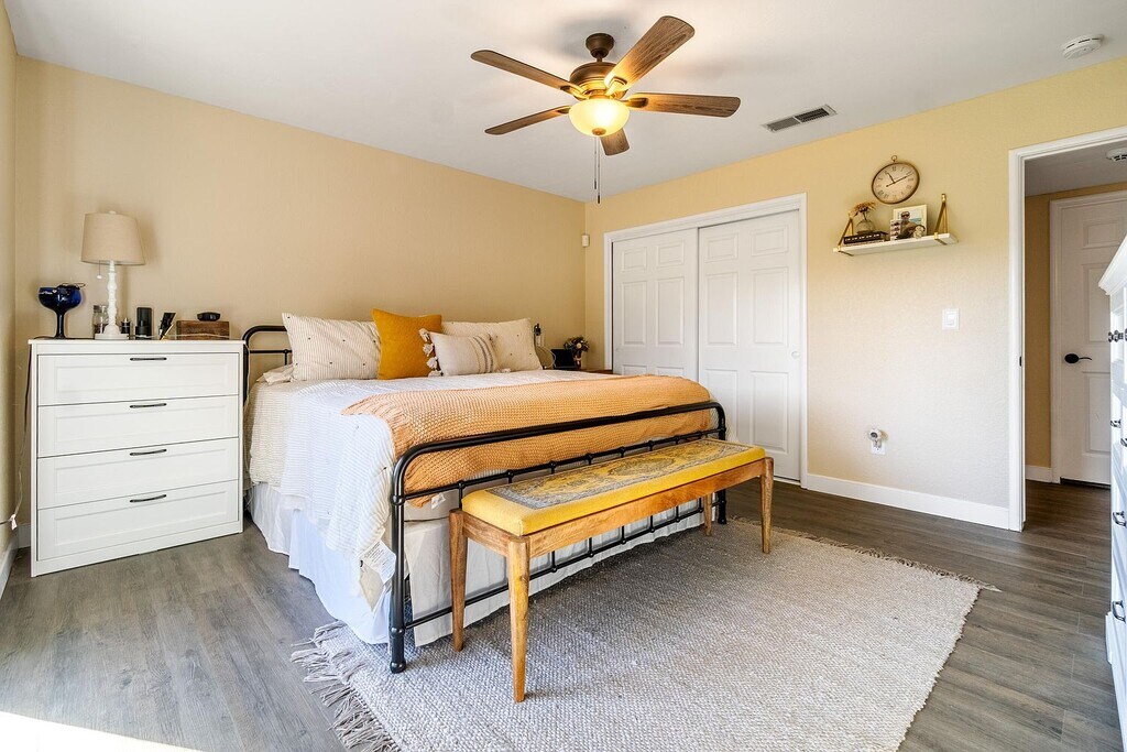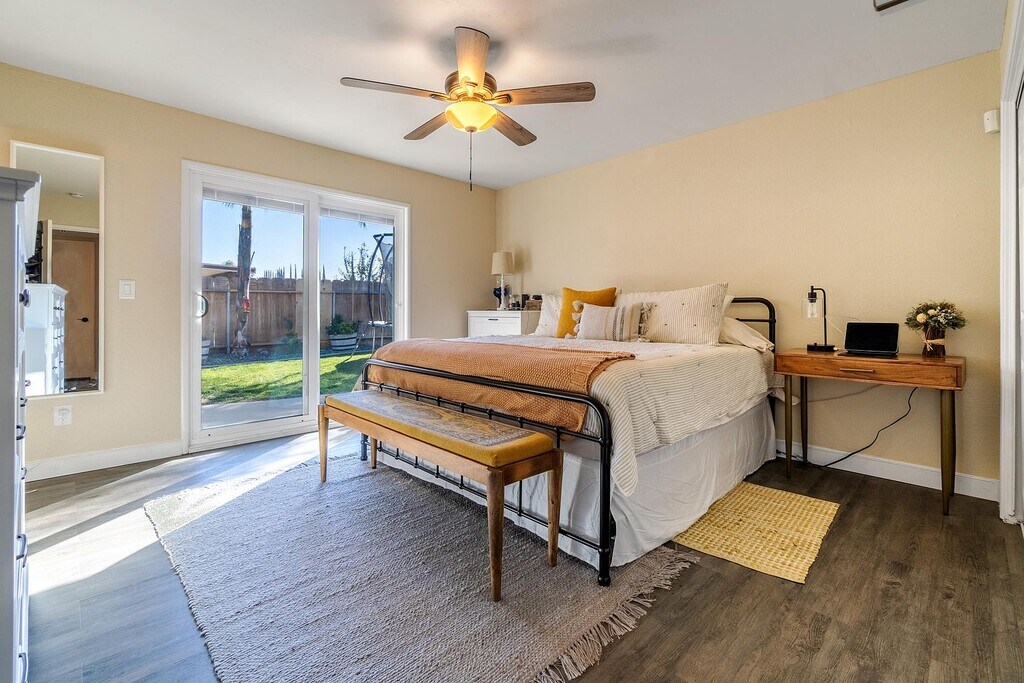 Property Id: 2412097 Beautiful 4 Bed/2 Bath +Office Near Completely Remodeled, Updated, In desirable Area While Having RV Parking! The home features paved driveway leading to the RV parking, covered front porch. Entering the home you are greeted with laminate flooring that extends through the most of the home, canned lighting in the living room w/a ceiling fan and red brick fireplace. living room flows right into the kitchen that has a breakfast bar, tile backsplash, update stainless steel appliance like built in stove & dual ovens. Down the hall you'll find a remodeled full guest bathroom, office/bonus room, 3 guest bedrooms that each have carpet & ceiling fan. Master bedroom gives access to the backyard, laminate flooring, ceiling fan, and private bathroom. Private bathroom has a update dual sink vanity & large step in tile shower. Wrap around backyard host a covered patio built to entertain. This home is located in NW area 13 minutes from lake success and within walking distance to Monache High School!