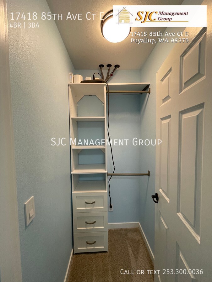 This beautiful South Hill home has 4 Bedrooms, an office/den downstairs plus loft area/bonus room upstairs, and 2.5 bathrooms. All 2538 square feet have custom details and colors, and the number of recent upgrades is too long to list! Here’s a start: • Beautiful new plank, carpet, and tile flooring installed in 2025 • Newer kitchen appliances and countertops. Huge pantry. • All bedrooms have newly installed walk-in closets with lights and built-ins. Primary has 2 separate walk-ins with built ins. • Newer HVAC system, including AC **Take a closer look at what you won’t find in other properties: • Heated floors in both full bathrooms • Deluxe primary bath with a heated towel rack, multi-jetted tub, double shower, extra-long 2 sink vanity, anti-fog mirrors with variable lighting, and heated floor • Networking: o -16 Ethernet ports o -Arris surfboard 8200 modem** o -serviced by a Netgear switch o -3 deco WiFi access points • Security system • Smart Blinds w/remotes • New back patio and fully fenced yard with shed • Solar (professionally installed and inspected by PSE) • Trim lights (customize with app) **The network WiFi can be used. Internet service can be provided with $100/mo additional rent. If tenant pays for their own internet service, the surfboard is a modem, and more reliable than a modem from the service providers. For more information or to set up a viewing please contact the leasing team at SJC Management Group today! Please note showings can be scheduled online at any time. After hours or weekends, showings must be scheduled and confirmed by our staff before the end of the business day. Our business hours are Monday-Friday from 9 am to 5 pm. We are closed for all major holidays. Pets [breed and size restrictions may apply] are allowed, pet screening required. Approved pets will incur a pet mitigation fee (between $150 and $350) at move-in + a monthly pet fee of $35-$75, max two pets. ADDITIONAL TERMS: Required $85 at move in and additional $35 per month Resident Benefit Package offers an array of advantages. With this package, you'll enjoy convenient benefits such as regular delivery of furnace filters and additional perks designed to enhance your renting experience. UTILITIES: Not Included DEPOSIT REQUIRED: $3150