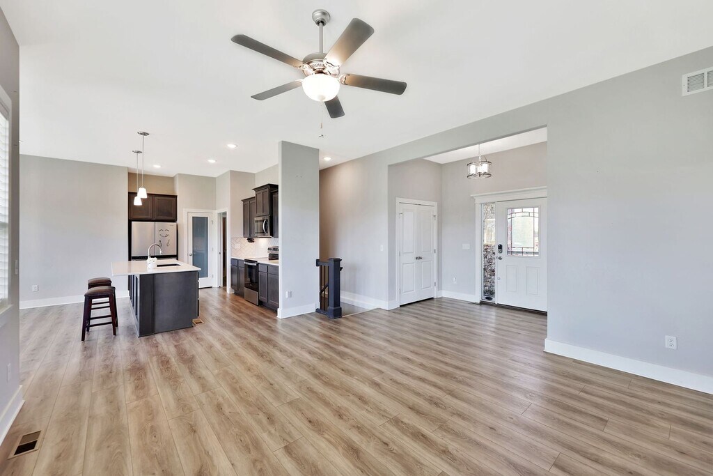 1742 N Blackstone Ct, Wichita, KS $3,000/month | $3,000 deposit | 5 Bed • 3 Bath • 3,230 sq ft • 3-Car Garage Located in the Blackstone Subdivision within the Maize School District, this newer 2020-built ranch home combines upscale finishes with everyday comfort. Step inside to an open main floor layout featuring luxury vinyl flooring, vaulted ceilings, and a spacious living room with natural light. The kitchen offers quartz countertops, a large island with eating bar, pantry, and modern appliances including a dishwasher, disposal, and range/oven — ideal for anyone who loves to cook or entertain. The main-level master suite includes dual sinks, a walk-in shower, and a large walk-in closet. Downstairs, the finished basement adds two more bedrooms, a full bathroom, a wet bar, and a large rec/family room — perfect for guests, a home office, or a second living area. Outside, you’ll enjoy a corner cul-de-sac lot with a covered patio, irrigation well and sprinkler system, and a 3-car oversized garage for all your vehicles or hobby space. The home also offers off-street parking and is surrounded by neighborhood amenities including a community pool, greenbelt, and nearby lake/pond. Located just minutes from 13th & 119th with quick access to I-135, I-235, and I-35, you can easily reach anywhere in Wichita or the surrounding areas. Tenant responsible for: utilities and lawn care. No smoking. Justus Kidd - Real Broker LLC