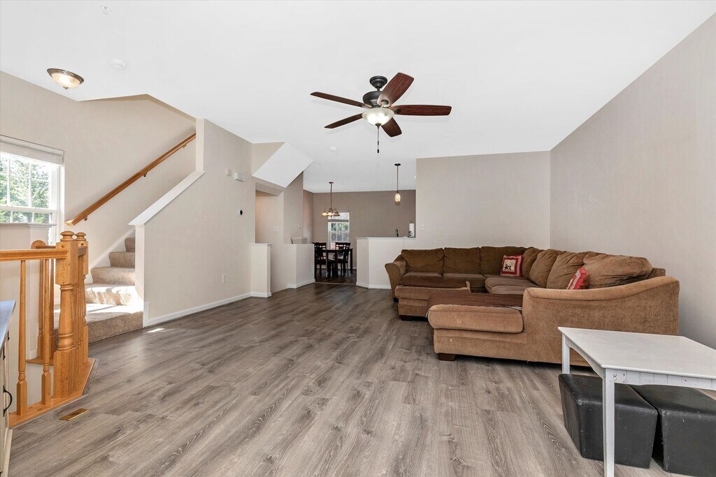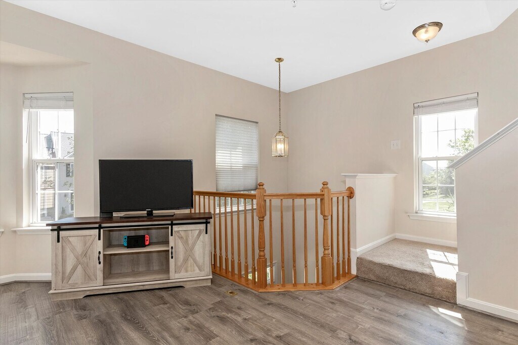 End-Unit Townhome in sought after community of Twin Arch Crossing with over 2400 finished square feet and garage. This lovely townhome has been recently painted, bathrooms recently remodeled, kitchen cabinet refaced, new lifetime flooring, and so much more. It offers a fenced back yard and deck on a nice corner lot. Minimum credit score of 640 required and gross income needs to be twice the asking rental amount. To apply please go to our website