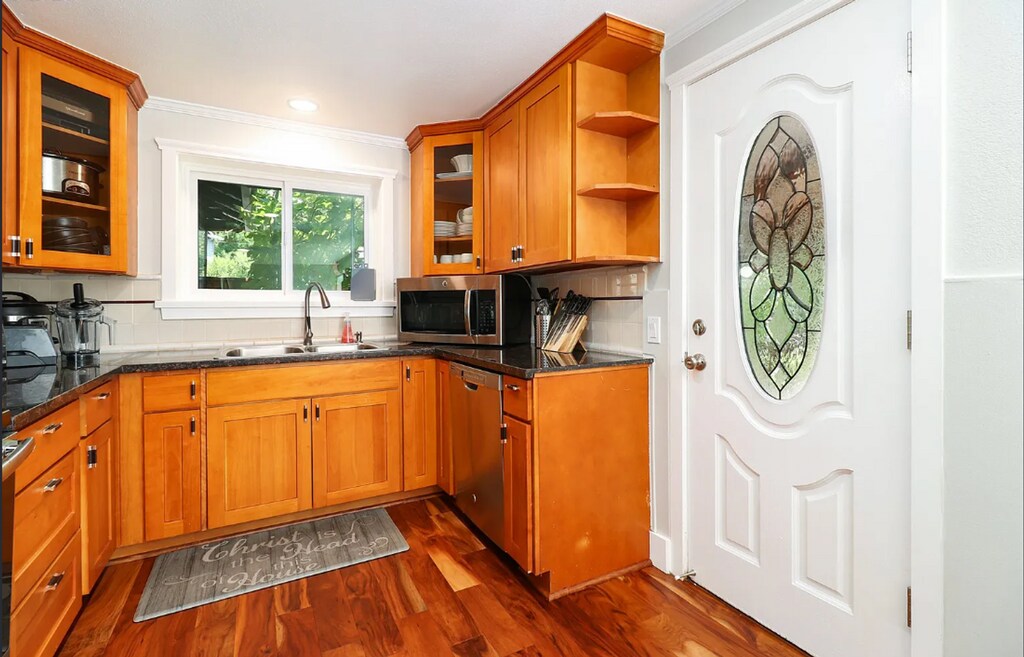 To schedule a showing, click the link below or copy and paste into your browser: Beautiful, updated log home that's just come on the market. It sits on over a quarter-acre lot and is filled with natural light. On the main level, you'll find stunning Acacia hardwood floors throughout, a spacious living room with a gorgeous fireplace, and large windows. The kitchen is equipped with a refrigerator, electric stove, dishwasher, wood cabinets, granite countertops, and a tile backsplash. There's also a dining nook with a door leading to the back deck. This level also includes two generously sized bedrooms, a full bath, and a laundry area. Upstairs, a solid walnut staircase leads to two oversized bedrooms with oak floors and walk-in closets, plus a half-bath. The large, fully fenced backyard is perfect for entertaining, with a covered deck, fruit trees, grapes, and garden boxes. This home is truly a must-see and is expected to go quickly! Terms: 12-month lease County: Washington Accessible Dwelling Unit: No Open Application Period Begins: 11/4/2025 Pet Policy: One pet is possible with owner approval, $50 a month pet rent, proof of spay/neuter, and pet screening. Special Terms: No smoking is permitted on the premises. Proof of renters' insurance is required prior to and throughout tenancy. The property is included in a furnace filter replacement program. Tenants will pay an additional $10 per month and receive quarterly shipments of the filters. Landscaping is included in the rent. Year Built: 1956 Heat: Gas Central Air Utilities Included in Rent: Trash- Owners will pay for a 35-gallon trash receptacle and recycling in jurisdictions where mandated. Any additional trash above the 35-gallon container will be the tenant’s responsibility to pay for. Utilities Paid by Tenant: PGE, NW Natural, Portland Water/Sewer Appliances: Dishwasher, Disposal, Electric Oven/Range, Refrigerator, Washer, and Dryer Garage: 2 Oversized Car Garage (with garage door opener). Vehicle Restrictions: Max 3 vehicles (No RV, boat or trailer) SCHOOLS: Grade School: Lynch Meadows Middle School: Centennial Middle High School: Centennial High Information deemed reliable but not guaranteed.
