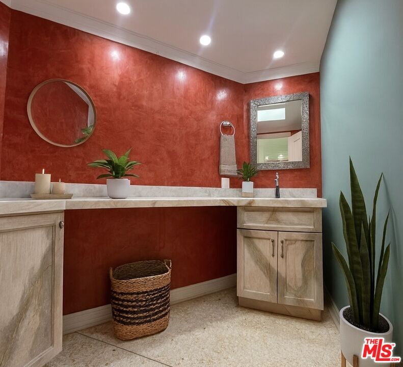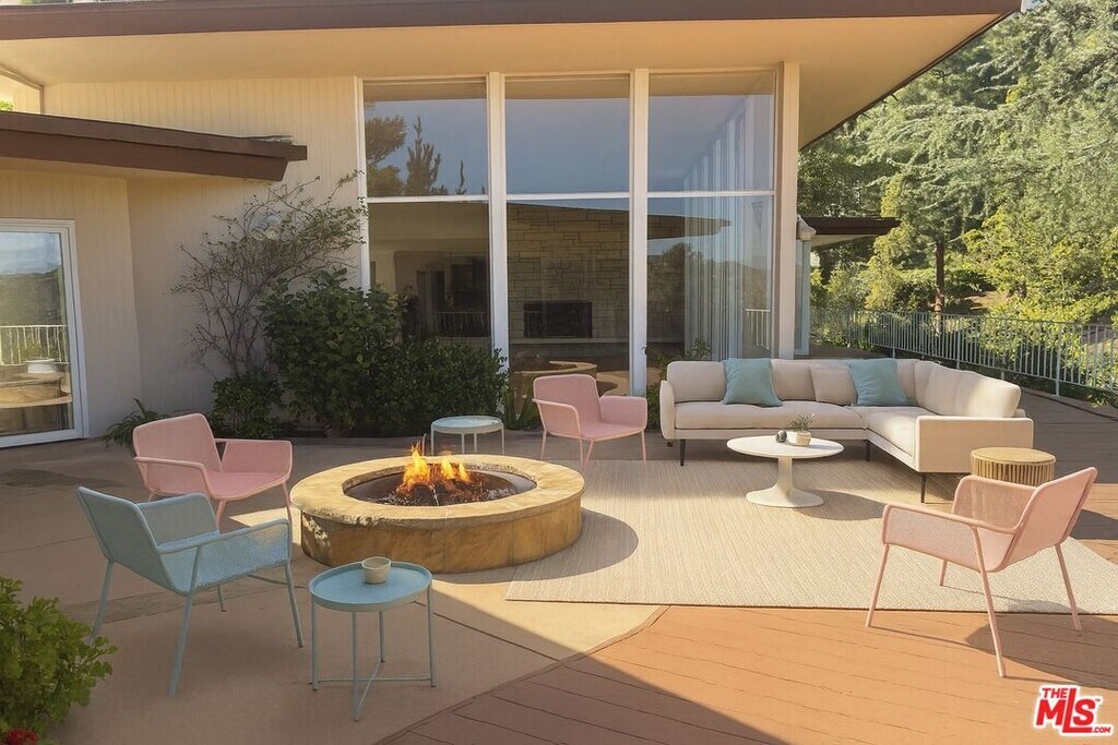 VIEW VIEW VIEW - Beautiful Lake View Home in Bel Air. Your dream home is here! This special place feels like a vacation every day full of light, great energy, and peaceful views. Located just a few minutes north of the famous Bel Air Hotel, this mid-century home offers stunning views of the lake and canyon. You enter through a private gate and walk over a bridge that leads to the pool and spa. Inside, the open floor plan feels bright and airy with high ceilings and expansive glass walls that bring the outdoors in. It's perfect for relaxing or entertaining, featuring a large deck, gas fire pit, custom pool, and spa with a waterfall. There's a cozy family room, den, dining room, and an office that can also be used as a guest room. The primary bedroom is spacious with abundant closet space, a large bathroom with skylights, and beautiful views. The home has been completely updated with brand-new bathrooms and a chef's kitchen equipped with top-quality appliances, ample cabinets, and generous storage throughout. Move-in ready and close to the Bel Air Hotel, this home truly has it all! (Photos are digitally staged. Home offered unfurnished.) MLS# 25608251