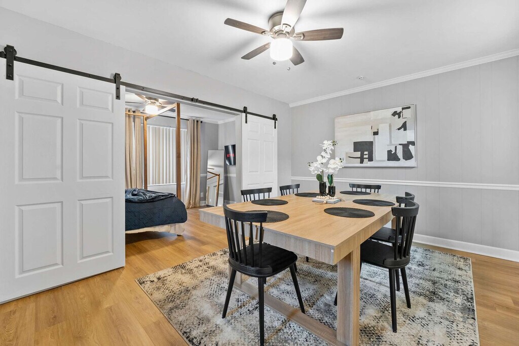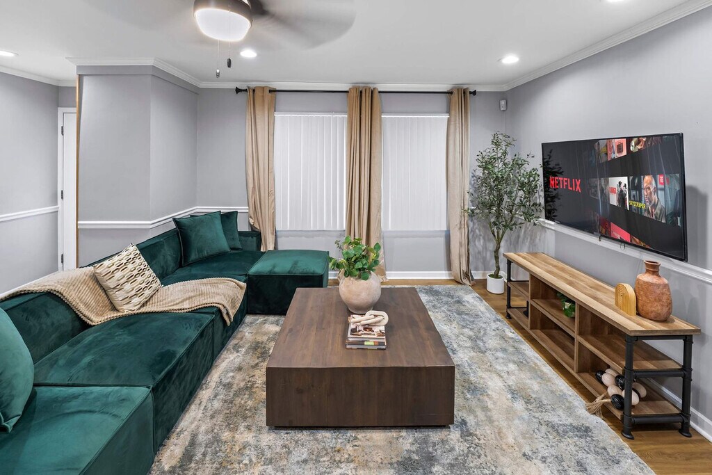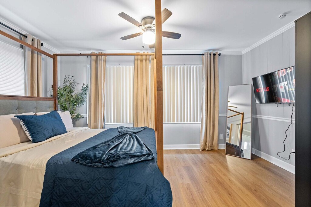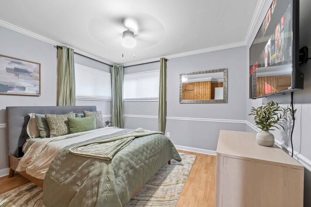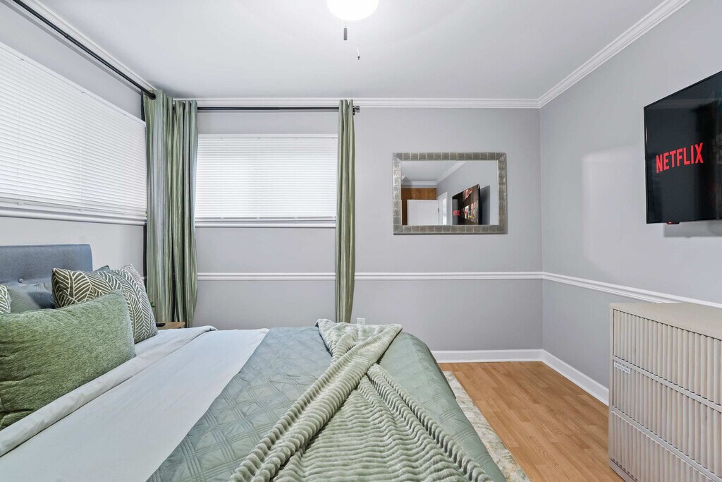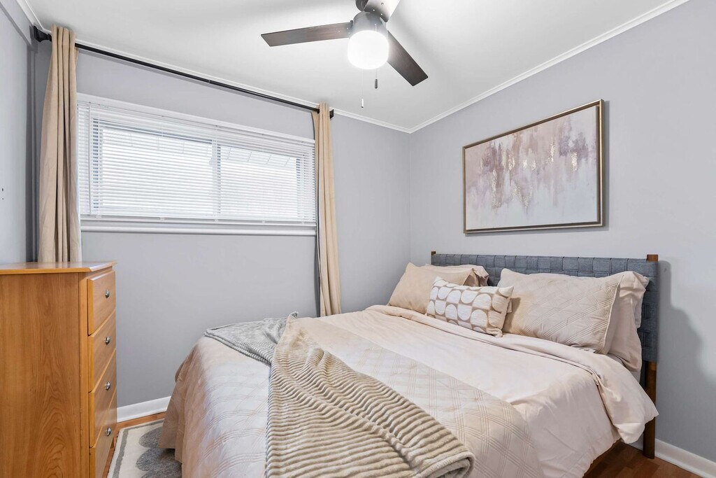 Welcome to your peaceful retreat in Tinley Park, Illinois! This spacious 4-bedroom, 1-bath oasis combines modern comforts with tranquil charm, perfect for families, groups, or professionals seeking a home away from home. Nestled in a quiet neighborhood, this home is fully equipped to make your stay both convenient and memorable. Relax in three cozy, beautifully furnished bedrooms, each featuring plush beds and plenty of natural light. This inviting home offers stylish interiors and a large outdoor space. The apartment includes four spacious bedrooms with a king-size bed in the first bedroom and queen-size beds in the remaining three. Enjoy a full bathroom with quality bath essentials, fresh linens and towels, a fully equipped kitchen with a coffee maker and kitchen essentials, a large living room with a smart TV, and an in-unit washer and dryer with detergent included. The huge backyard is perfect for outdoor relaxation. The property offers high-speed Wi-Fi and work-friendly spaces, making it perfect for remote work. A business center is also available for business travelers. Explore nearby attractions like the Vogt Visual Arts Center just 0.5 miles away, Tinley Park Performing Arts Center at 1.3 miles, and Tinley Park Historical Society at 1.2 miles. For family-friendly activities, visit Odyssey Fun World 2.0 miles away or White Water Canyon Water Park at 2.1 miles. The Hollywood Casino Amphitheatre is 3.1 miles away, and Orland Square Mall is 5.0 miles away. Dining options are also conveniently close, with The Primal Cut Steakhouse 1 mile away and Eggheadz Cafe 1.5 miles away. Occupancy is limited to the number of guests stated on the listing description, with babies under the age of two not included in this count. There is a strict no-parties policy, with a $1,000 fine and immediate eviction for violations. Quiet hours are from 11PM-7AM, and any noise complaints may result in a $300 fee and termination of the reservation. Tampering with the outside camera will result in a $350 fee and eviction. There is a zero-tolerance policy for smoking or vaping inside, with a $500 deep cleaning fee for violations. Unauthorized late checkouts will incur a $100 fee. Includes high-speed Wi-Fi and work-friendly spaces, perfect for remote work. A business center is also available for business travelers. [SI]