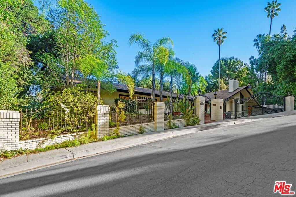 This 5 bedroom gated estate home offers a wonderfully indoor/ outdoor California lifestyle. Remodeled/updated. The formal entry foyer designer wood flooring leads to the Grand Great room" with soaring, pitched, beamed ceilings. It is an amazing space and bar. The chef's kitchen features a cozy breakfast room that opens to a large den/family room. Another wing contains spacious bedrooms & an enormous muster suit with a luxurious bath. A home office stands alone & is not one of the bedrooms. The maid's bedroom is located behind the kitchen & laundry room. The outdoors offer California entertaining at best with pool/spa and bar with an amazing view of the city lights and trees. Serene locations set amid homes in the multi-million dollar range. Prime south of Ventura location by Rancho Estates. Must see!" MLS# 26637657