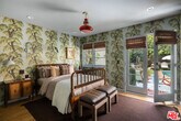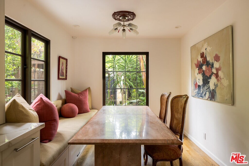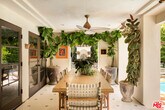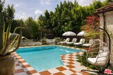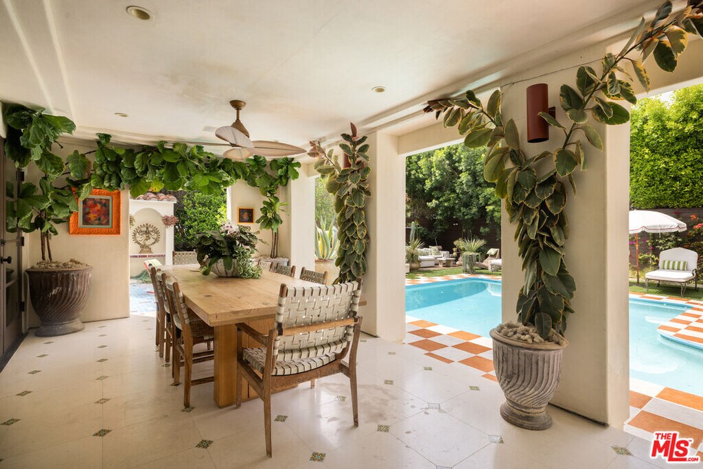 Tucked into the foothills, this gated Mediterranean Architectural Digest-published residence offers privacy, scale, and effortless indoor-outdoor living - available as a fully furnished lease. Beautifully appointed, the home features warm hardwood floors, designer-curated furnishings, and a seamless flow throughout. The gourmet kitchen, complete with high-end appliances, ample storage, and an oversized island, opens to a sunlit family room with French doors leading to the outdoors. A library, powder room, and two en-suite guest bedrooms complete the main level. The upper level offers an additional en-suite guest bedroom and a generous primary suite with a walk-in closet, spa-like bath, and private terrace with city and hillside views. Outside, the property unfolds into a lush, resort-like setting with a covered terrace, pool, hot tub, outdoor kitchen, firepit, and multiple areas for dining and entertaining. A separate detached pool house provides added flexibility. Fully gated with a double entry and security cameras. Ideally located near Runyon Canyon and Wattles Garden Park, and just minutes from Hollywood, West Hollywood, and the Sunset Strip. Furnished lease only. 13-month minimum term. MLS# 26736229