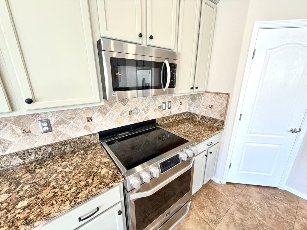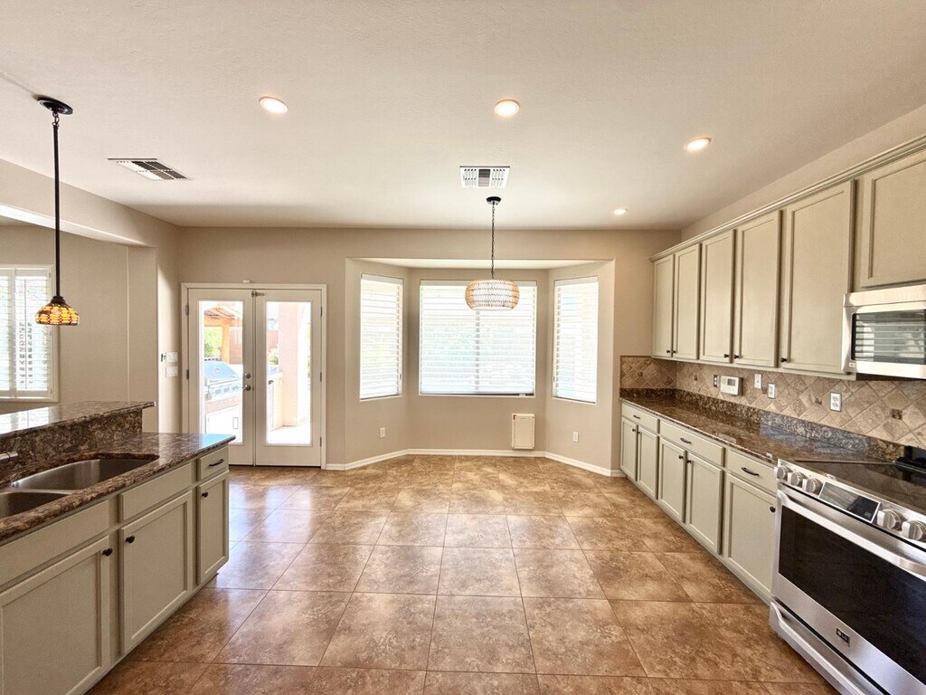 Located in the stunning Sierra Montana community in Surprise,this 3 bedroom,2 bath home with den and 2-car garage offers over 2,000 sq ft of wonderful living space and a resort-style backyard. The open floor plan features tile in main areas,wood-look flooring in bedrooms,and plantation shutters. The spacious family room opens to covered patio and pool for seamless indoor-outdoor living. Kitchen includes granite countertops,stainless appliances,tile backsplash,breakfast bar,and dining,walk-in pantry,and ample cabinetry. The primary suite offers patio access,double vanity,soaking tub,separate shower,with walk-in closet. Private backyard includes pool,outdoor kitchen,bar,tiki bar,and multiple seating areas perfect for relaxing and spending time with family and friends. MLS ID 7017733