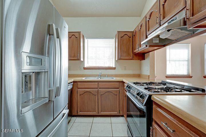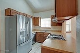Home with Refrigerated air and NO CARPET!!! Home offers great security with gates all around the home including on front and back door. Great low maintenance landscape in front and back! Raised high walls for great privacy with a nice porch for cook outs! All new stainless steel appliances included,also includes washer and dryer! Please verify schools