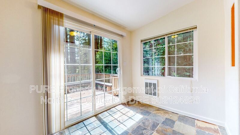 $2,150 / 1 bedroom / 1 bathroom / 1,528 square feet ESTIMATED TOTAL MONTHLY LEASING PRICE: $2,175.99 Base Rent: $2,150.00 *Resident Benefits Package: Starts at $25.99 Welcome to your new home in Guerneville! Nestled in the heart of the redwoods, this charming 1 bedroom, 1 bath home offers a peaceful retreat from the hustle and bustle of everyday life. Featuring a fully-equipped kitchen and inviting living room, you'll have everything you need to make yourself at home. Step outside onto the deck and bask in the stunning views of the majestic redwoods. Whether you're seeking a peaceful escape or a base for your outdoor adventures, this property offers the perfect blend of comfort and convenience. Don't miss out on this amazing opportunity - schedule a tour today and experience the magic of Guerneville living for yourself! Utilities are split between both Unit A & B Unit A- is responsible for 67% of water, trash and PG&E ANIMALS PETS ACCEPTED: No. To simplify pet verification and ensure policy clarity, we use PetScreening, a third-party service. All applicants with pets must complete this screening. Full animal policy details are available on our website. Breed restrictions apply. Pet Fees do not apply. The monthly rent will increase by $30-$80, per pet, per month. Applicants with pets will be required to either enroll in our Pet Liability Insurance Program or provide Pet Liability Insurance Coverage that meets PURE’s minimum requirements.*Inapplicable to assistance animals. RESIDENT BENEFITS PACKAGE Elevate your living experience! Every PURE home includes our Resident Benefits Package ranging from $25.99 - $49.99 and may include perks such as on demand pest control, liability insurance, credit building, and much more! SECURITY DEPOSIT INFORMATION Pay the traditional security deposit amount, or reduce your move-in costs with our Security Deposit Waiver Program. Eligible applicants can replace the traditional deposit with an affordable monthly fee. While you remain responsible for any damages, this program offers substantial upfront savings! AMENITIES AND SERVICES INCLUDED Moving in just got easier! Enjoy PURE Utility Concierge services at no extra cost, making your transition smooth and simple. And as a special perk, you'll get access to our private site with exclusive member discounts, deals, and offers through EBG Entertainment. ADDITIONAL DISCLOSURES All information provided is deemed reliable and accurate but not guaranteed. Prospective residents are responsible for verifying all property details and conditions to their satisfaction prior to submitting an application. Please be aware that we do not advertise on Craigslist. We do not accept applications from any 3rd party service including Zillow. Visit our website for more information and to apply. PURE Property Management, CA DRE #02124826