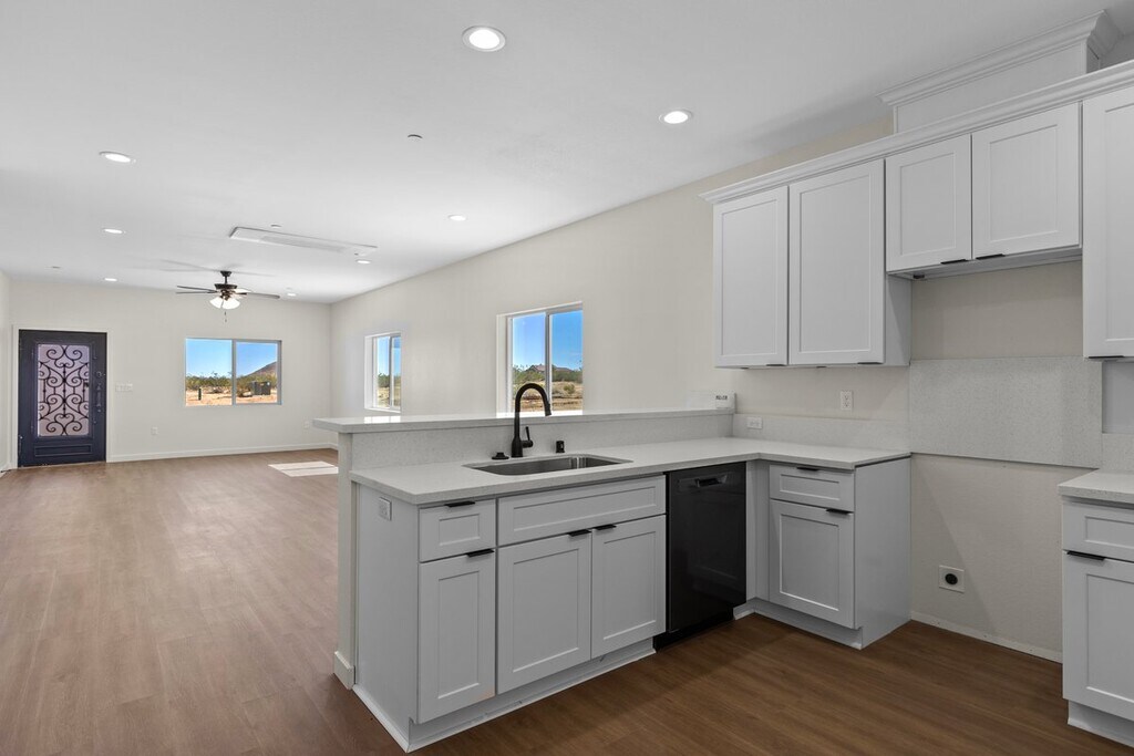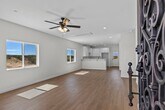 Your dream home awaits, offering Breathtaking Views of California City!* Newly Built in 2025, Custom Construction located in the Rancho Estates on 2.5 Acres, in California City Features 1507 sq. ft., 4 Bedrooms & 2 Baths. As you arrive at your elegant wrought iron front door, you're welcomed by a grand entry showcasing a stunning full decorative stone wall, adding timeless charm and sophistication to the space. Open Floor Plan boasts a grand entry into the main Living area, elegant open Kitchen with Quartz counter tops, tons of self-closing Cabinetry, Black Stainless Steel Appliances, and Large Island. Features include, recessed lighting, custom floor, ceiling fans, highlighted living area featuring 9' ceiling and indoor laundry room. Huge Master Suite and large walk in closet. The master bath is spacious, featuring an oversized walk-in tiled surround shower, dual sinks, and ample cabinetry. Hall full bath is complete with Quartz countertops, tile flooring & tile surround tub/shower. Energy Efficient home with R-60 insulation in ceilings and R21 in walls. Two- 21.5 seer HVAC Systems and solar. This beautifully located home sits in the heart of California City, just minutes from Highway 58 and Edwards Air Force Base! Call to schedule a showing