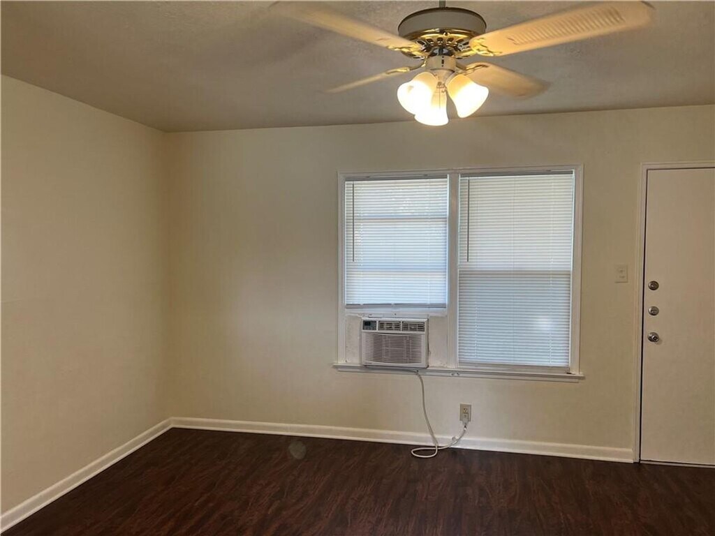 Charming 3-bedroom, 1-bathroom home! Priced at an affordable $1250/month, this home offers a blend of comfort and convenience. The kitchen is equipped with a gas range, perfect for those who love to cook. The entire house boasts plank flooring for easy clean up. For your comfort, the home is fitted with window units and ceiling fans, ensuring a pleasant atmosphere all year round. The property also includes washer and dryer connections located in a separate shed, adding to the convenience. The fully fenced yard provides an outdoor space for relaxation and recreation.