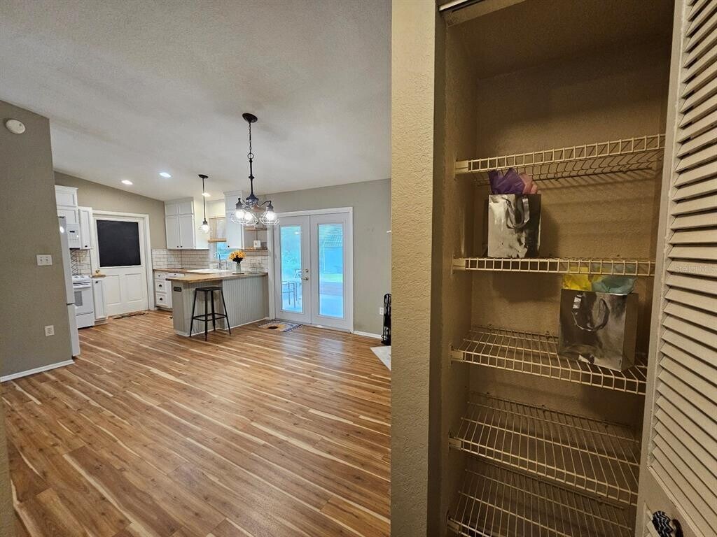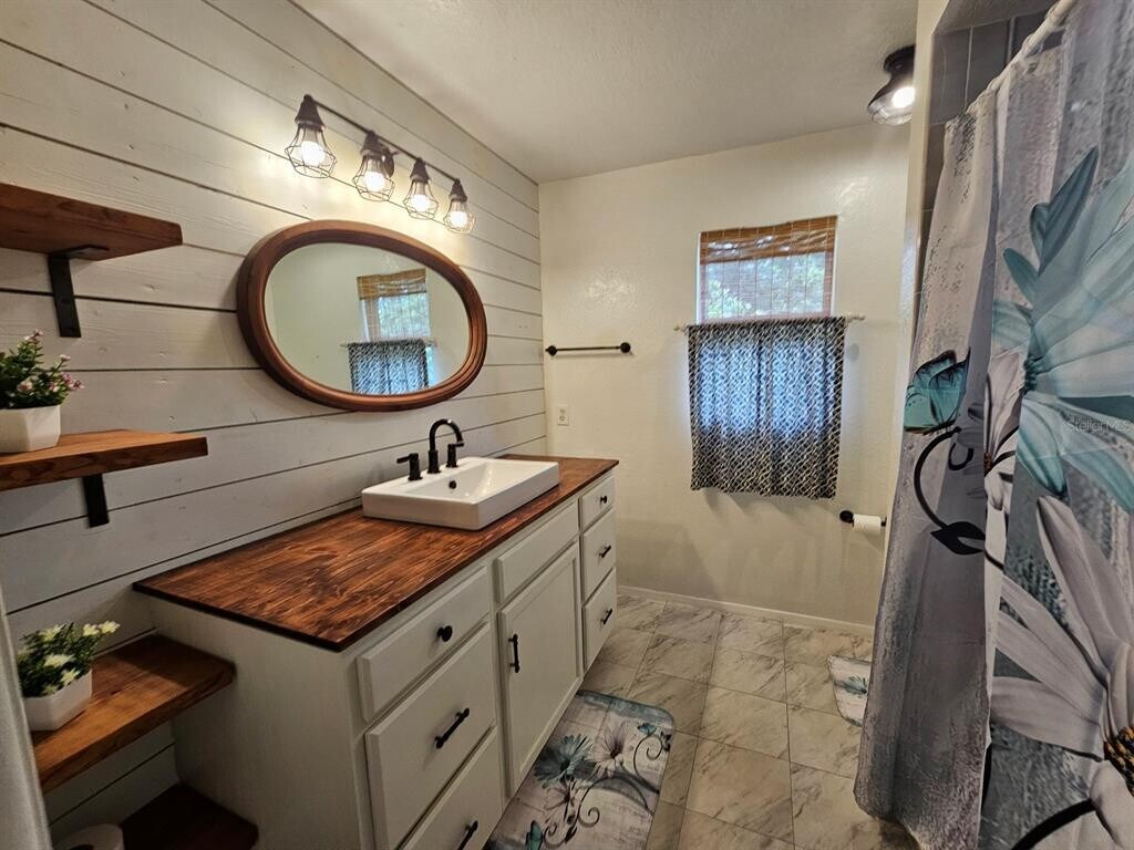 Imagine yourself Living in this charming 2 bedroom,2 bath home Centrally located in a great area of Port Charlotte,this home is nestled amongst palms and oaks and has a great country feel while being close to all the city amenities. Upon Entering is the great room that features built in shelving and bookcases with a fireplace facade,a wall mounted TV,luxury vinyl plank flooring that continues through the dining area and the kitchen. The dining room has a real wood-burning fireplace,with a mantle perfect for hanging any type of decoration. Cathedral ceilings,plant shelves that will allow your creative side to flourish. The kitchen features newer appliances with a convection oven,a French door refrigerator with an ice maker and water dispenser inside,and a breakfast bar that has open shelving on the kitchen side. Backsplash featuring subway style backsplash,the butcher block counter tops and the chalkboard window. The primary bedroom has extra storage with an en-suite bath with a walk-in shower,open shelving and an updated vanity. The guest bath has a tub/shower and a wall mounted medicine cabinet. There are French doors leading out to the screened in lanai with a ceiling and a cabinet perfect for gardening supplies. The backyard was designed for outdoor living with a large slab for a BBQ grill (and also designed to hold a pop-up tent),two posts for a hammock,a fire pit and a clothesline. electricity and a loft for extra storage. And,the entire backyard is fenced. This home is POWERED BY SOLAR - a rooftop solar system for low electricity in the $25 - $35/month range year around - a HUGE benefit to owning this home. This home has also been protected with Hardi-plank siding and has a fairly new metal roof. The home is on city water. MLS# C7512039