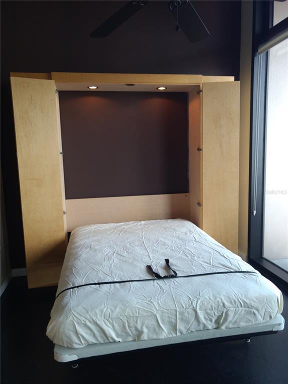 Spectacular views of Tampa Bay,downtown St. Pete,Albert Whitted Airpark and so much more from inside this 10th floor unit or sitting on the spacious balcony. Industrial urban style design,over 1000 square feet. TWO (2) assigned parking spaces for this contemporary loft condo in the heart of downtown. Floors are contemporary concrete,cabinets are maple,counters are granite,easy to maintain. Stainless steel appliances. Large bedroom with walk in closet in addition to extra sleeping with built in Murphy Bed in living area. Eleven (11) foot ceilings,brick accent wall,walk-in shower. A/C replaced 11/24. On site property manager. Internet/cable wi-fi included. Potential tenant must submit to background/credit and is subject to board approval. No smoking. No pets. MLS# TB8478209