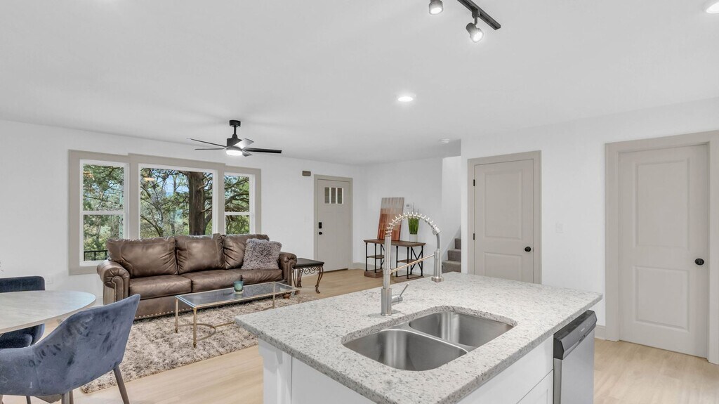 Just around the corner from Nickajack Lake and only 25 minutes from Chattanooga, this beautifully renovated home offers both peace and convenience. Set on a quiet, private lot, this home has been thoughtfully transformed with major updates throughout including a new roof, new windows, new HVAC, new water heater, new plumbing, and updated electrical. The covered front porch is perfect for enjoying morning coffee or crisp evenings with glimpses of the lake, while the private backyard creates a relaxing space to unwind or entertain. Inside, you'll love the open floor plan that's designed for both gathering and everyday living. The kitchen shines with a granite countertops, brand new stainless steel appliances and plenty of space to cook, connect, and create memories. Upstairs, the primary suite is your personal retreat, complete with a beautifully tiled shower. Two additional bedrooms and a full bath can also be found on the upper level. Downstairs offers incredible flexibility featuring a fourth bedroom, an additional full bath ideal for guests, and two bonus rooms ready to fit your lifestyle whether that means a home office, media room, gym, or playroom. Home Details: 4 bedrooms 3 bathrooms Spacious Yard Laundry with washer and dryer hookup - not provided Kitchen features new stainless steel appliances Bonus room downstairs