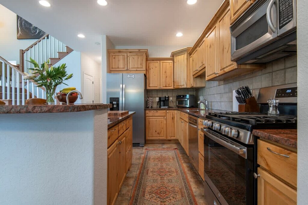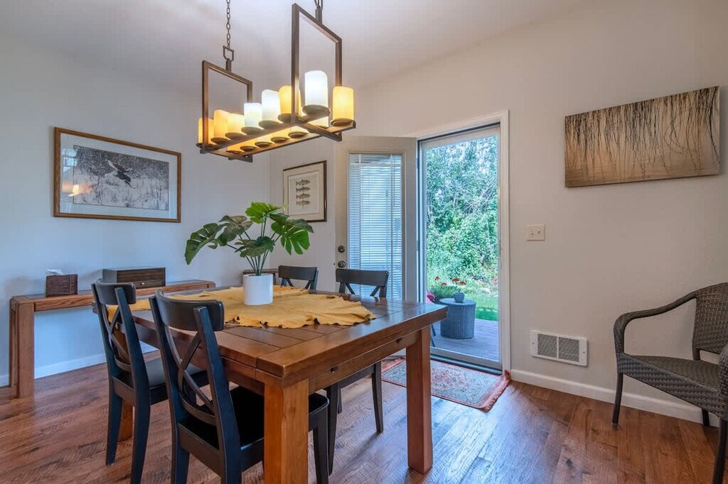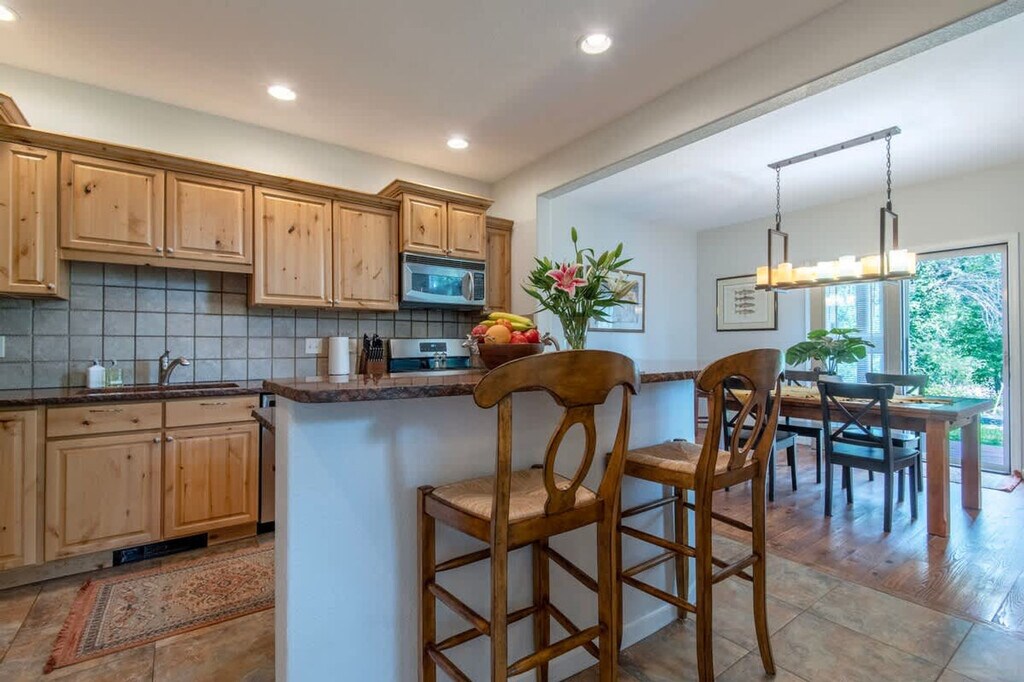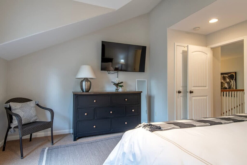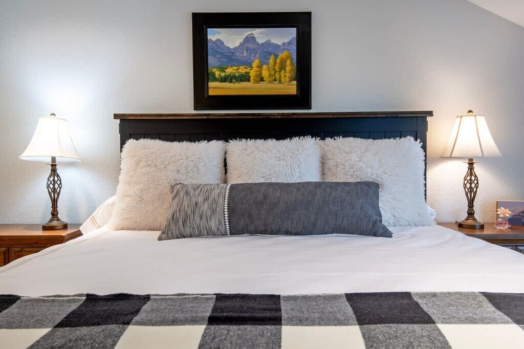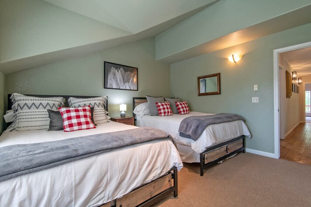 Feel at home in this spacious and comfortable home nestled in the serene heart of the Tetons. This home is the ideal basecamp for skiing adventures at Grand Targhee Resort and comfortably sleeps 8 guests. All bedrooms are upstairs. The master bedroom features a king-size bed and a flat-screen TV. One room has two queen-size beds, while another boasts a queen-size bed and a flat-screen TV. The master bedroom has its own full bath with a luxurious jacuzzi tub and shower, and the two queen bedrooms share a full bath. There is also a convenient half bath downstairs. The fully equipped kitchen includes a new water heater located in the downstairs half bath closet, a fridge that's just a year old, a gas oven and cooktop, and an air fryer/toaster oven. Relax in the living area with a 78” TV and Sonos surround sound and enjoy cozy evenings by the two-sided gas fireplace. Up to 2 pets are welcome with a pet fee. This home is perfectly situated to experience the best of the Teton Valley during the winter. It is just a short drive from Grand Targhee Resort, offering easy access to world-class skiing and snowboarding. Discover the winter charm of nearby towns like Victor and Driggs and enjoy local restaurants, bars, and unique shops, all within a short distance from this home. The neighborhood is Aspen Point. Quiet Hours are from 9 pm to 8 am and guests should be respectful to the neighbors. No events are allowed, including parties, large gatherings, and weddings. Smoking or vaping is prohibited in the home or on the decks, and if any butts are found on the property, an additional charge will be applied. If pets are brought onto the property without paying the pet fee, or if more than two pets are brought onto the property without authorization, the booking may be terminated immediately. If pet hair is found on furniture or bedding, there may be an additional fee. Noise complaints resulting from kenneled pets may result in the termination of your stay. Fines will apply for violations including but not limited to leaving garbage in house or litter on grounds, failure to disclose or clean up after pets, smoking in house or garage, failure to follow house rules and respect posted signs, failure to follow check-out procedure, mistreatment of hot tub, or violations of local laws. A minimum $500 fine will be applied for smoking/vaping/marijuana in the house or garage, violation of house rules, posted signs, laws, or failure to vacate at check-out time. [SI]