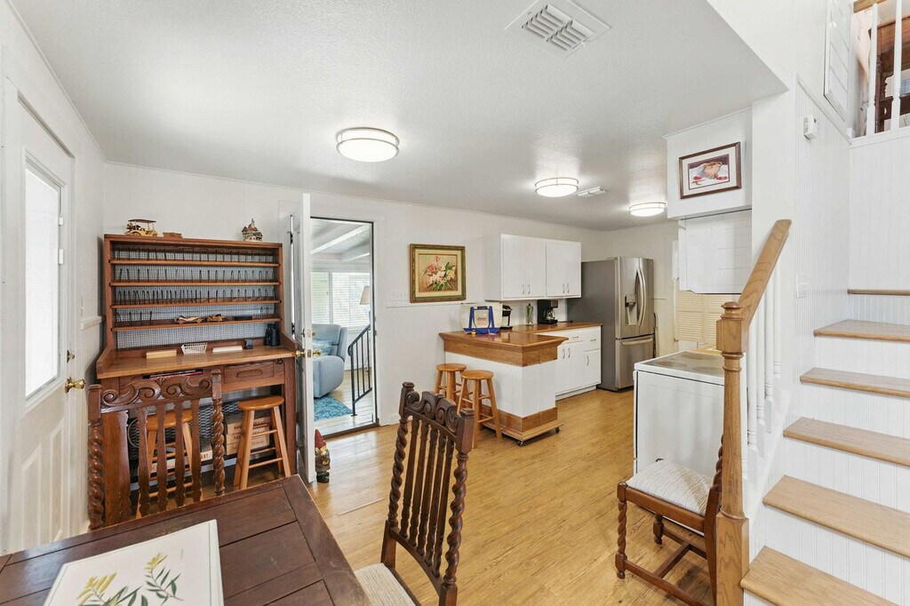 Feel at home in this beautifully restored 1920s home in New Braunfels, available for monthly rental. Xander Haus blends vintage charm with modern comfort, featuring restored wooden floors and gingerbread trim. The open living room is furnished with antiques, and the fully equipped kitchen is ready for family meals. Enjoy the shaded backyard patio with a grill under a large pecan tree, perfect for relaxing or entertaining. Located just down the street from beautiful Landa Park and around the corner from the famous Wurstfest grounds, Xander Haus puts you in the heart of New Braunfels. Enjoy a short walk to downtown shops, restaurants, and local attractions. In the mornings, wake up to the peaceful sight of deer and ducks roaming nearby. Quiet hours are between 10 PM and 8 AM. Please respect the home. [SI]