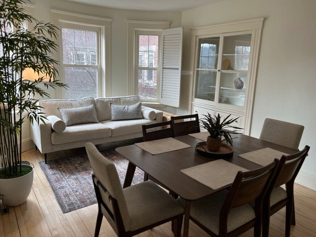 Mid Cambridge extremely spacious 5 room 2bed/1 bath in classic brick courtyard building. Large entryway foyer leads to southeast facing living room,2 bedrooms and bath. Down a short hallway to a separate formal dining room and eat in kitchen with exposed brick. The rent includes your heat,water and sewer. In unit washer/dryer provides convenience you don't normally get in a classic brick building. This location provides easy commute from Central Square red line to Harvard,MIT and Kendall Square. No smoking building and no pets allowed. Recently painted as well as floors refinished. If you love charm and character you don't want to miss this one! MLS# 73477197