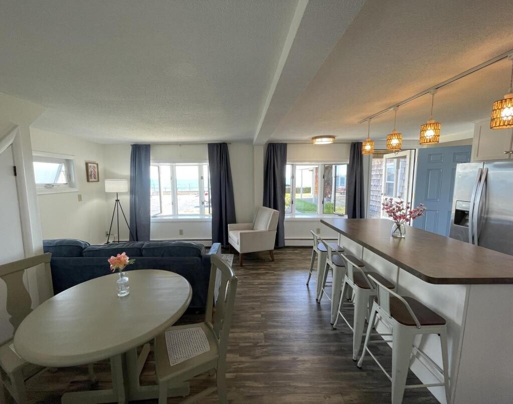 Fully Furnished Winter Rental: October 2025 to May 2026. Be the first to enjoy this totally updated and fully furnished two story, one bedroom apartment with UNBELIEVABLE WATER VIEWS from your private deck and covered porch! This charming 1050sq/ft 2 story apartment features 1 bedroom and 1.5 bathrooms, providing ample space for relaxation and privacy. With amenities such as a glass cooktop stove, refrigerator, microwave, and dishwasher, cooking and meal preparation will be a breeze in this well-equipped kitchen. Additionally, enjoy the luxury of FREE electricity, WIFI, heat and hot water included in your rent, ensuring a cozy and comfortable living environment. Whether you're a busy professional or simply looking for a low-maintenance living arrangement, this apartment is the perfect choice for those seeking a hassle-free lifestyle in a desirable location. Please note that smoking is not allowed inside the premises, ensuring a clean and healthy living environment for all residents.