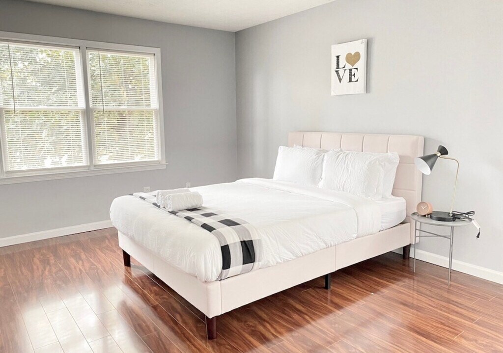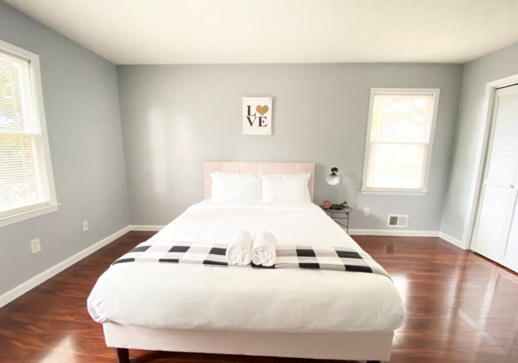 Feel at home in this beautiful, spacious corner lot home located right off Hwy 316 in Lawrenceville, just across the street from Georgia Gwinnett College. This three-level home offers easy access to Hwy 316 and I-85, making it a convenient choice for both mid-term and long-term stays. Featuring a large great room for working space downstairs, with three bedrooms upstairs and a guest bedroom on the main floor, this home is ideal for families or groups. Enjoy the comforts of home in this clean and beautiful space. The living area includes a comfortable couch or sectional and a 50-inch TV, along with a desk and chair for a dedicated working space. The kitchen, while not fully equipped to the standards of a personal home, includes a full-sized refrigerator, microwave, cooktop stove, small countertop oven, coffee maker, and kettle, along with basic kitchenware for simple meals. The dining area features a cozy table and chairs, perfect for family meals. The property offers free Wi-Fi and an on-site washer and dryer for your convenience. An extra queen air mattress is available on site. For guests staying mid-term or long-term, additional cookware can be brought to personalize the kitchen space. Mid-stay cleaning services can be requested for an additional fee. The property is conveniently located right off Hwy 316 in Lawrenceville, just across the street from Georgia Gwinnett College, and offers easy access to Hwy 316 and I-85. Check-in is at 4 pm, and check-out is strictly at 10 am, with a penalty fee of half the night’s stay for late check-out. The property has a no-smoking policy, including electronic cigarettes, with a $250 cleaning charge for violations. No loud noise, parties, or events are allowed, and the maximum capacity is 10 people. Unregistered guests will incur an additional charge of $50 per guest per night. Pets are not allowed unless prior authorization is given, with a nonrefundable pet fee of $150 per pet per stay for small pets under 25 lbs. The property is equipped with security cameras outside for added safety. Parking is available for up to 4 standard-size cars, with no overnight street parking allowed. Guests are required to respect community guidelines and keep the property clean. Includes a dedicated working space with a desk and chair, making it suitable for remote work. Wi-Fi is provided to ensure a seamless work-from-home experience. [SI]