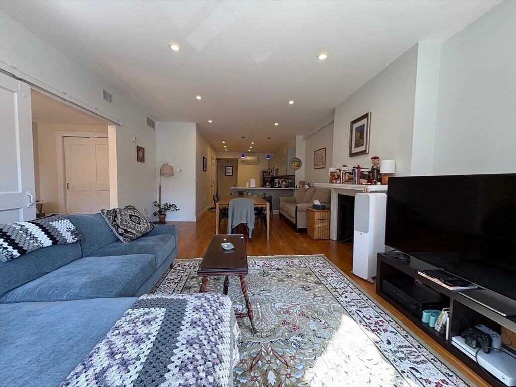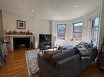 AVL MAY 15TH! Fully renovated floor through unit with spectacular Back Bay skyline views in the heart of vibrant Newbury Street. This sophisticated home centers around a sleek,contemporary kitchen outfitted with quartz countertops,extensive cabinet storage,and a breakfast bar that opens directly into a massive living room with decorative fireplace. Hardwood floors and central air conditioning flow through every room. Spacious primary suite with deep walk-in closet,as well as a versatile second bedroom,which features a stylish barn door,and perfect space for a secluded home office or a cozy guest room. Professionally managed and rental parking available for an additional monthly fee. MLS# 73500278