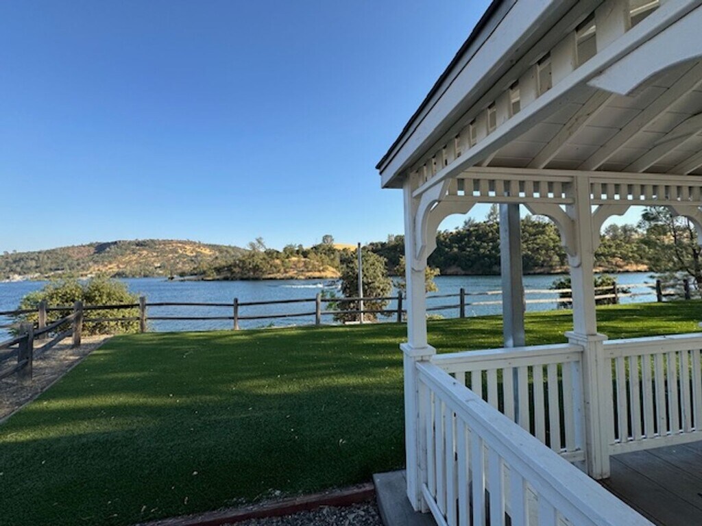 This single family home is located in a gated community on Lake Tulloch, approximately 1,689 sqft with a living room, office area, kitchen, master suite w/ jetted tub, walk-in closets, and outdoor access, carpet & tile flooring, granite counters, gas range, dishwasher, fridge, microwave, garbage disposal, laundry room w/washer & dryer, gas fireplace, two car garage w/electric opener, central heating & air conditioning. Pets very strictly negotiable. One Year Lease Required. Renter's Insurance Required. HOA Rules & Regulations. Zillow rental applications are not accepted.