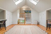AVAILABLE FOR AUGUST 2026. Located off Bellevue Avenue, stands a unique modern property that sits on over an acre of land. The first floor offers plenty of space including an eat-in kitchen with double ovens, half bath, large living room with flat screen TV, wood-burning fireplace surrounded by built-ins and a fantastic sunroom which is flooded with light and overlooks the spacious backyard. The second floor landing is the perfect spot for work and play: outfitted with built-in desks, a daybed and plenty of storage behind newly designed doors with keyhole accents. The upper level boasts a primary suite with a king-size bed, walk-in closet, bath with stand-alone tub and a large tiled, walk-in shower and balcony. There are two more guests bedrooms with twin beds that share a bath with a shower. Dogs may be considered on a case-by-case basis and for an additional cleaning fee. Also available for JULY 2026 @ $25,000 and SEPTEMBER 1, 2026 - JUNE 30, 2027 @ $6,000/month (inclusive of utilities).