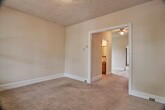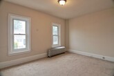 This LARGE 4-5 bedroom, 2 full bath twin home features a large eat-in kitchen, ceiling fans, fresh paint, new carpet on 3rd floor, great yard, off-street parking and detached garage. No pets allowed. Credit check is required.