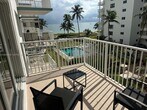 Discover your perfect retreat! This beautifully remodeled 2-bed, 2-bath condo is on the 4th floor of an oceanfront boutique building. Step inside to find a fully furnished space with stunning porcelain floors in the living area and laminate floors in the bedrooms. The kitchen boasts granite countertops and modern appliances, brand new impact sliding doors and windows. You will enjoy beautiful ocean views from your balcony. Tiki hut area with grills next to the pool/ocean to entertain friends and family. Wake up to the sound of waves and embrace a lifestyle of coastal comfort. Your beachfront oasis awaits! Also available for Seasonal rental at Seasonal Rate + Tourist Tax. Call to discuss.